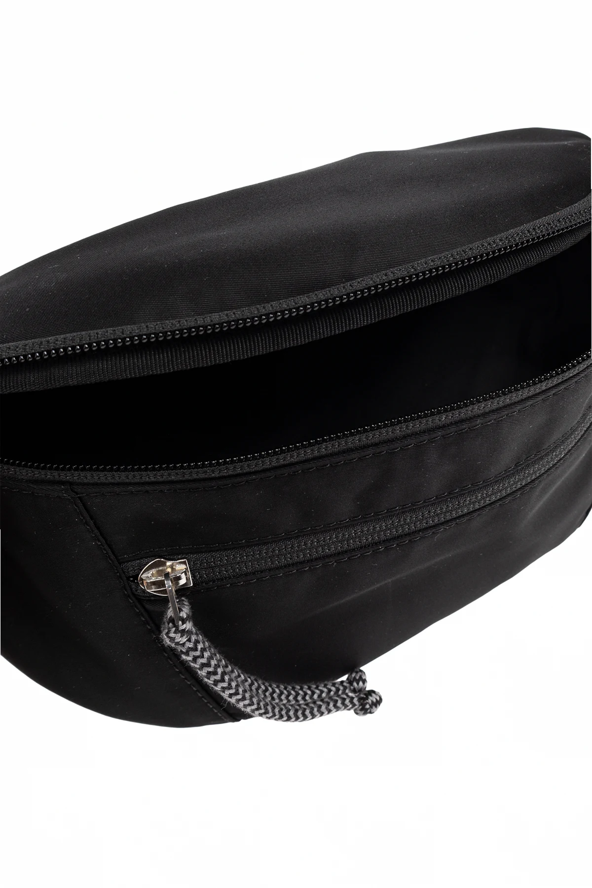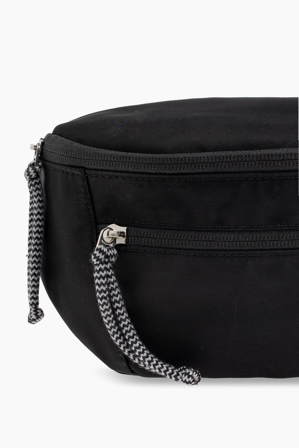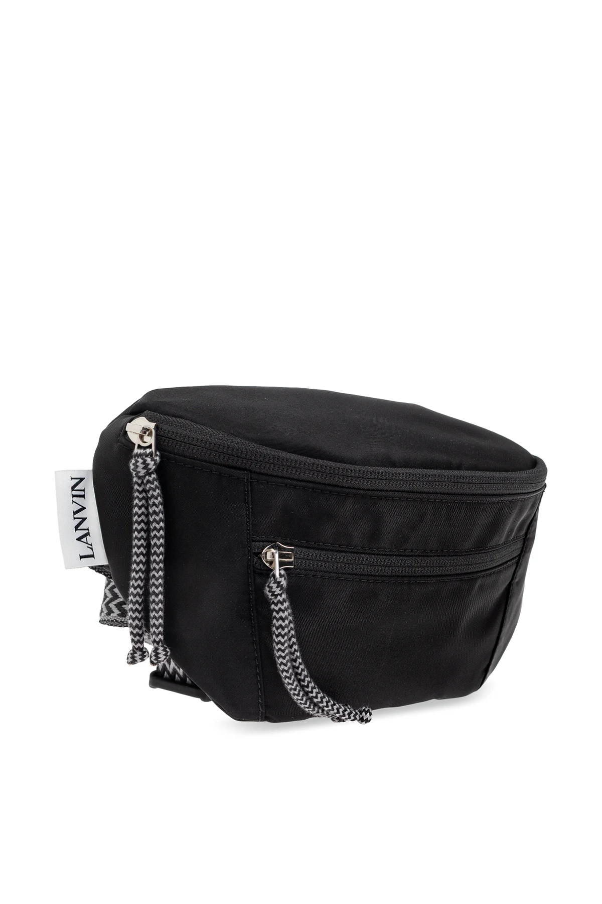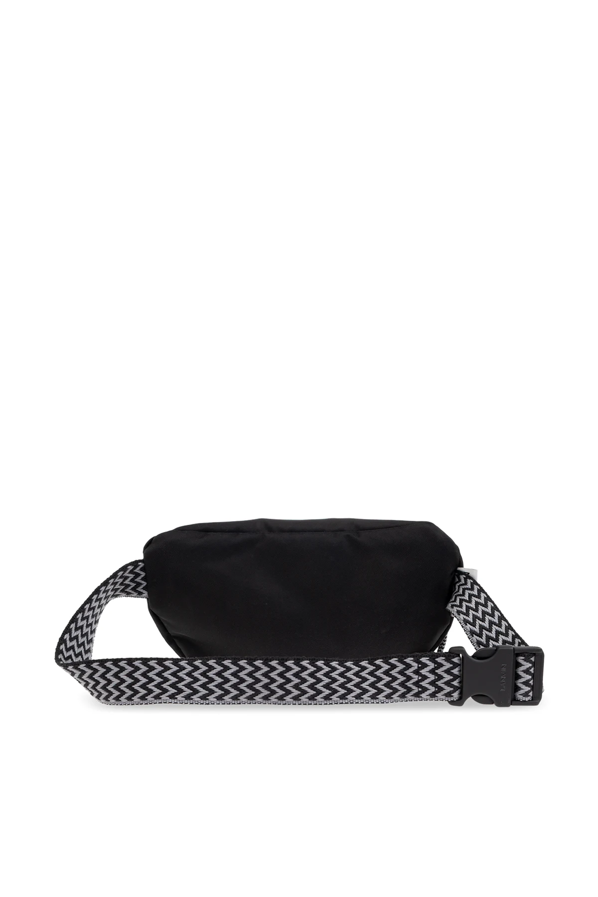 Black 'Curb Small' belt bag from Lanvin. Made of fabric, this design secures with a zip and features a decorative, colourful strap, one zip pocket on the front, silver-tone metal hardware and one internal compartment.