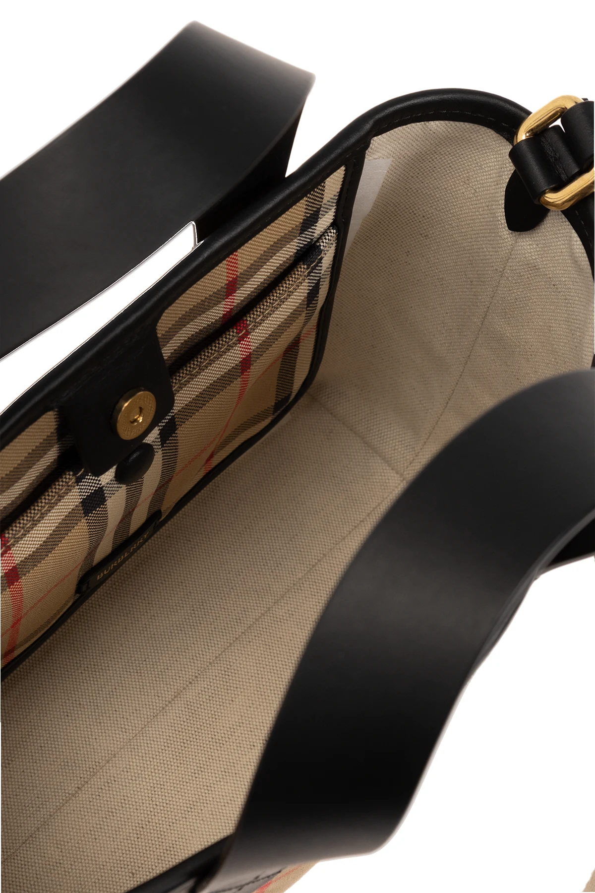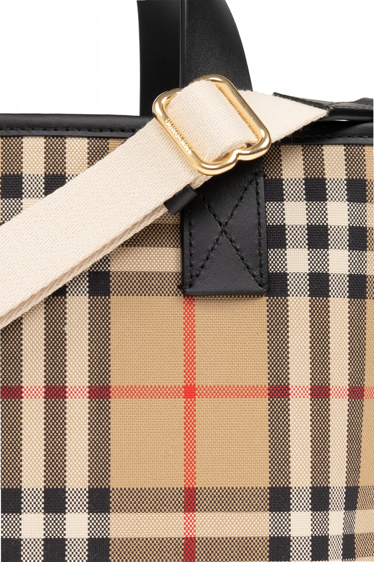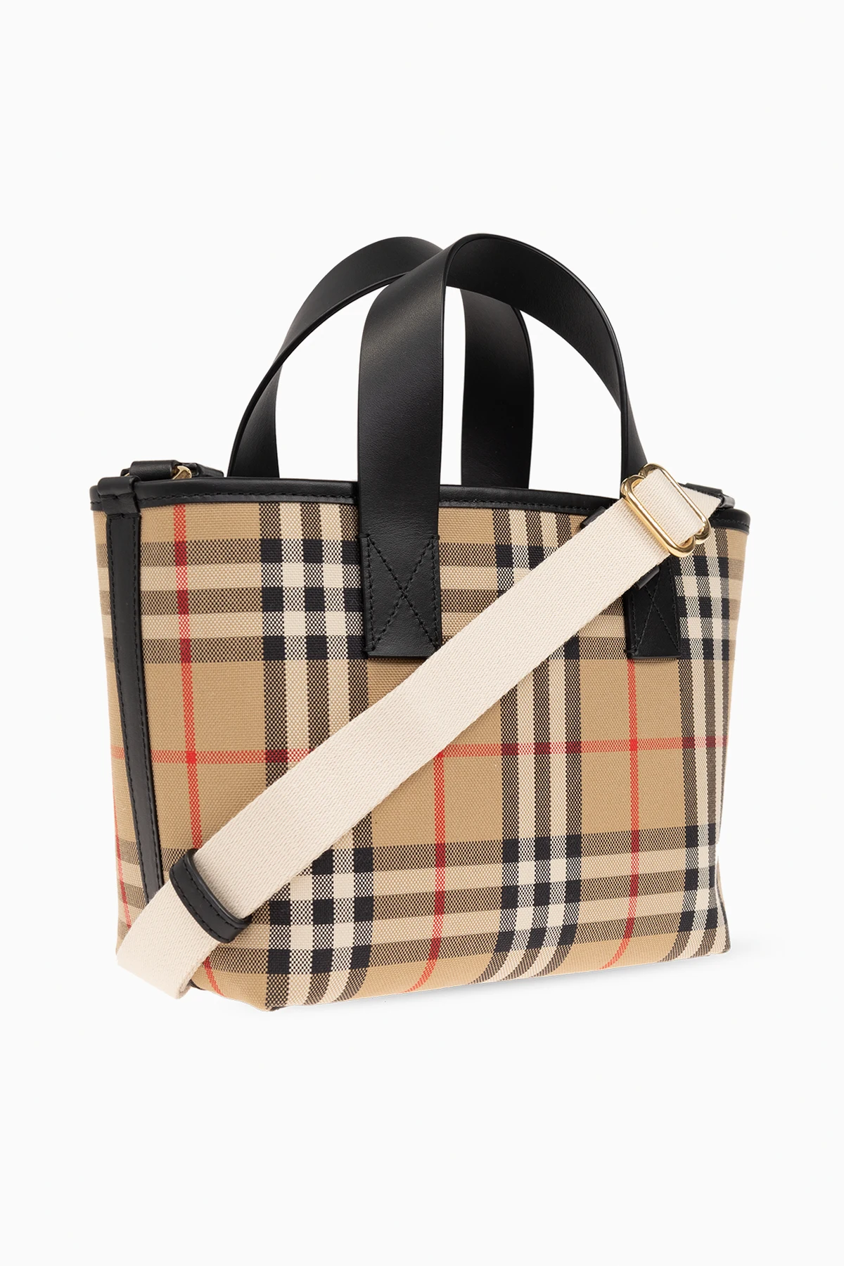 Introducing the BOYFRIEND Shoulder Bag by Burberry Kids, a testament to timeless elegance and unparalleled craftsmanship. This exquisite accessory is characterized by its rectangular shape with subtly rounded corners, presenting a harmonious blend of beige, black, red, and white in a classic plaid pattern. Crafted from durable cotton and reinforced with premium leather accents, this bag promises both longevity and style. The bag's exterior showcases a symmetrical plaid design, meticulously woven to achieve a seamless aesthetic. Two robust black handles and an adjustable light-colored shoulder strap with golden hardware elevate the bag's sophistication. The interior, mirroring the bag's external palette, is impeccably lined with cotton, ensuring your belongings are enveloped in luxury. A gold buckle or clasp, along with discreet black details, possibly part of a zipper or decorative element, further accentuate its exclusivity. The BOYFRIEND Shoulder Bag maintains its structure flawlessly, indicative of superior craftsmanship. Leather reinforcements at critical points ensure durability, making this piece not just an accessory, but a necessity for the discerning fashion enthusiast. Why Purchase This Product? Exquisite Design: Classic plaid pattern in a sophisticated color palette. Superior Quality: Crafted from high-grade cotton and leather, with meticulous attention to detail. Functional Elegance: Sturdy construction, adjustable shoulder strap, and ample interior space. Exclusive Details: Gold hardware and unique accents elevate the bag's luxury appeal.