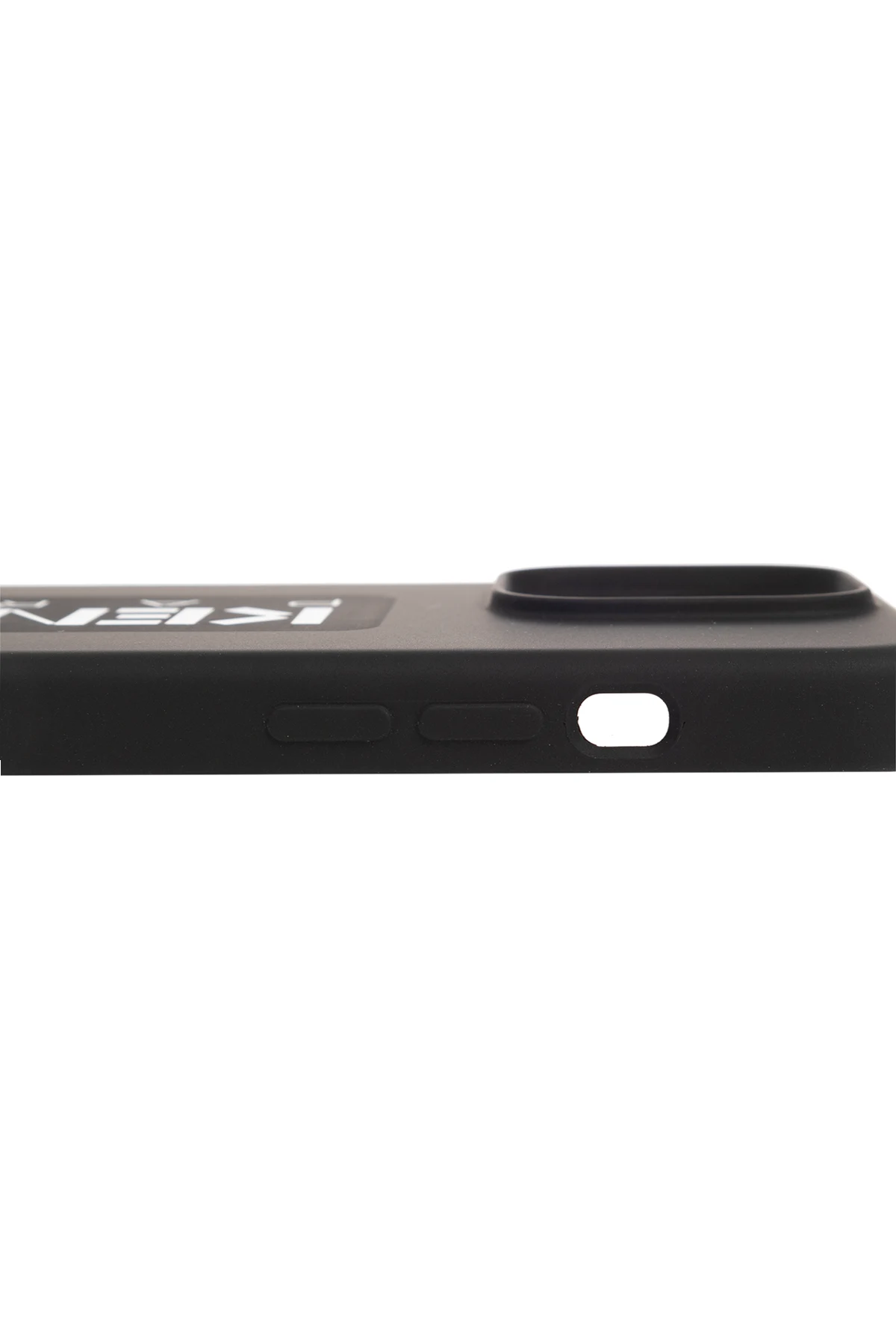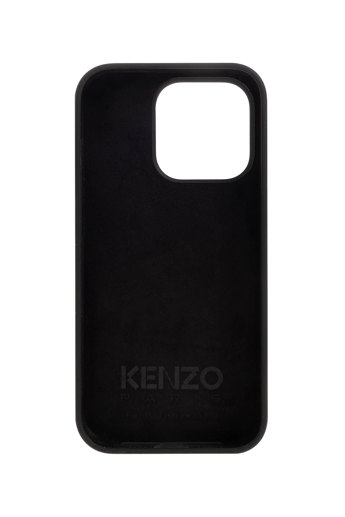 Black iPhone 15 Pro case from Kenzo. This item showcases a black graphic print with the brand's logo.