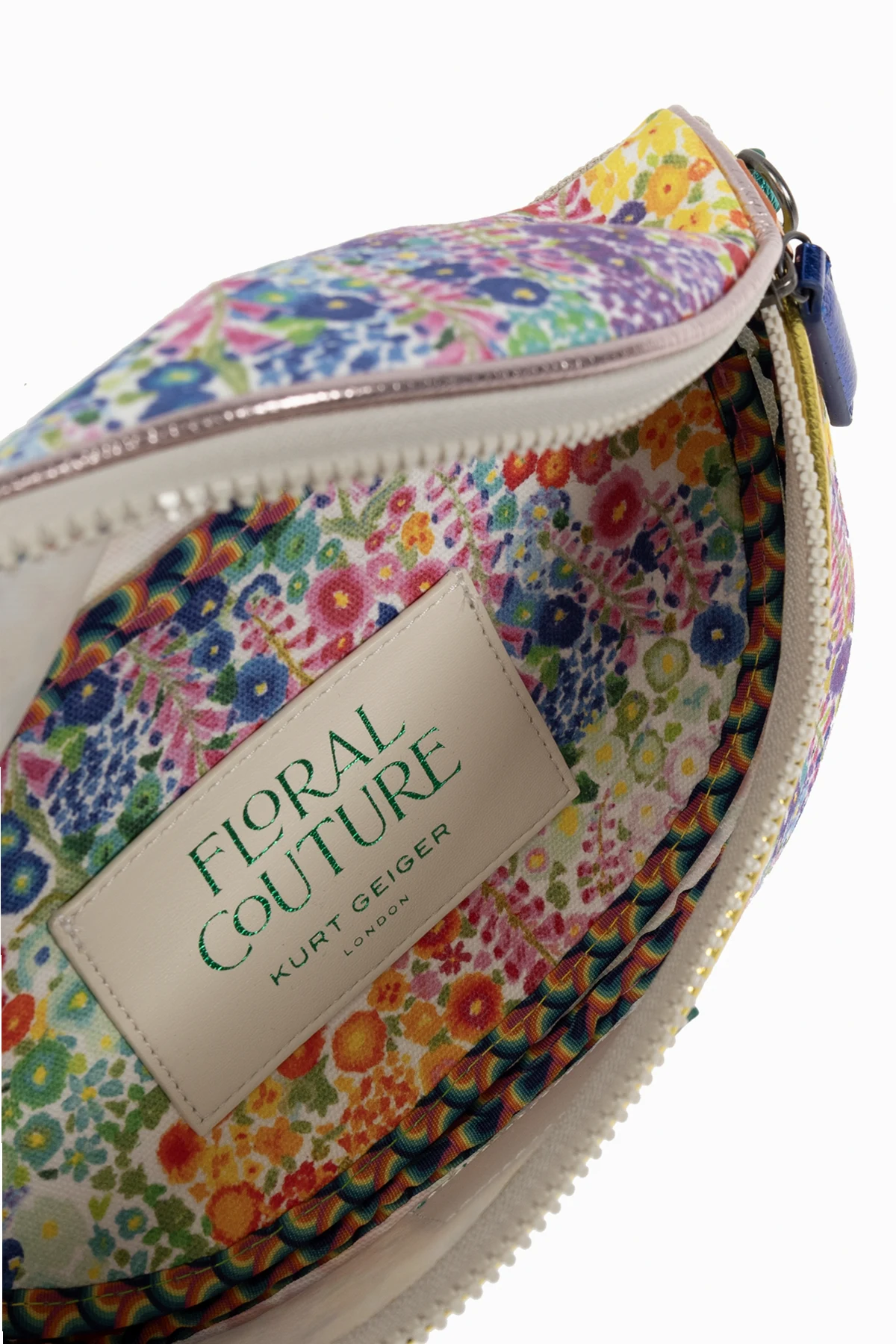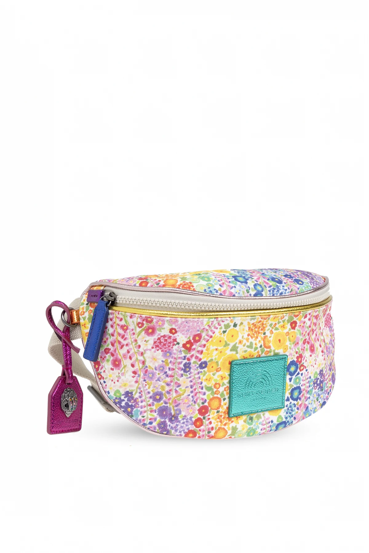 Introducing the Southbank belt bag, a vibrant and multi-colored accessory that brings a touch of floral exuberance to your wardrobe. Crafted with durability in mind, this piece is made from a resilient blend of leather and fabric, ensuring it stands the test of time while maintaining its lively, floral aesthetic. The surface is adorned with a kaleidoscope of colors including pink, yellow, blue, and green, creating a joyful and expressive character. At the forefront of the design is the rectangular, turquoise logo of KURT GEIGER LONDON, prominently placed to signify its exclusive design lineage. This emblem not only accentuates the bag's elite status but also harmonizes with the overall floral theme. Further embellishing its appearance is a pink tassel attached to the zipper, serving as a subtle decorative touch that complements the bag’s colorful palette. The Southbank belt bag features a versatile, adjustable strap allowing for varied styles of wear, including as a hip bag or slung across the shoulder, contrasted against the vibrant pattern for a striking look. Inside, it houses a compartment and a card slot, encapsulated within the "FLORAL COUTURE KURT GEIGER" collection, suggesting its curated design and exclusivity. Why Purchase This Product? Diverse Functionality: Adjustable strap for multiple wearing options. Exclusive Design: Part of the "FLORAL COUTURE KURT GEIGER" collection, ensuring a unique addition to your collection. High-Quality Materials: Crafted from leather and durable fabric for lasting use. Exquisite Details: Signature logo and decorative tassel add elegance and identity.