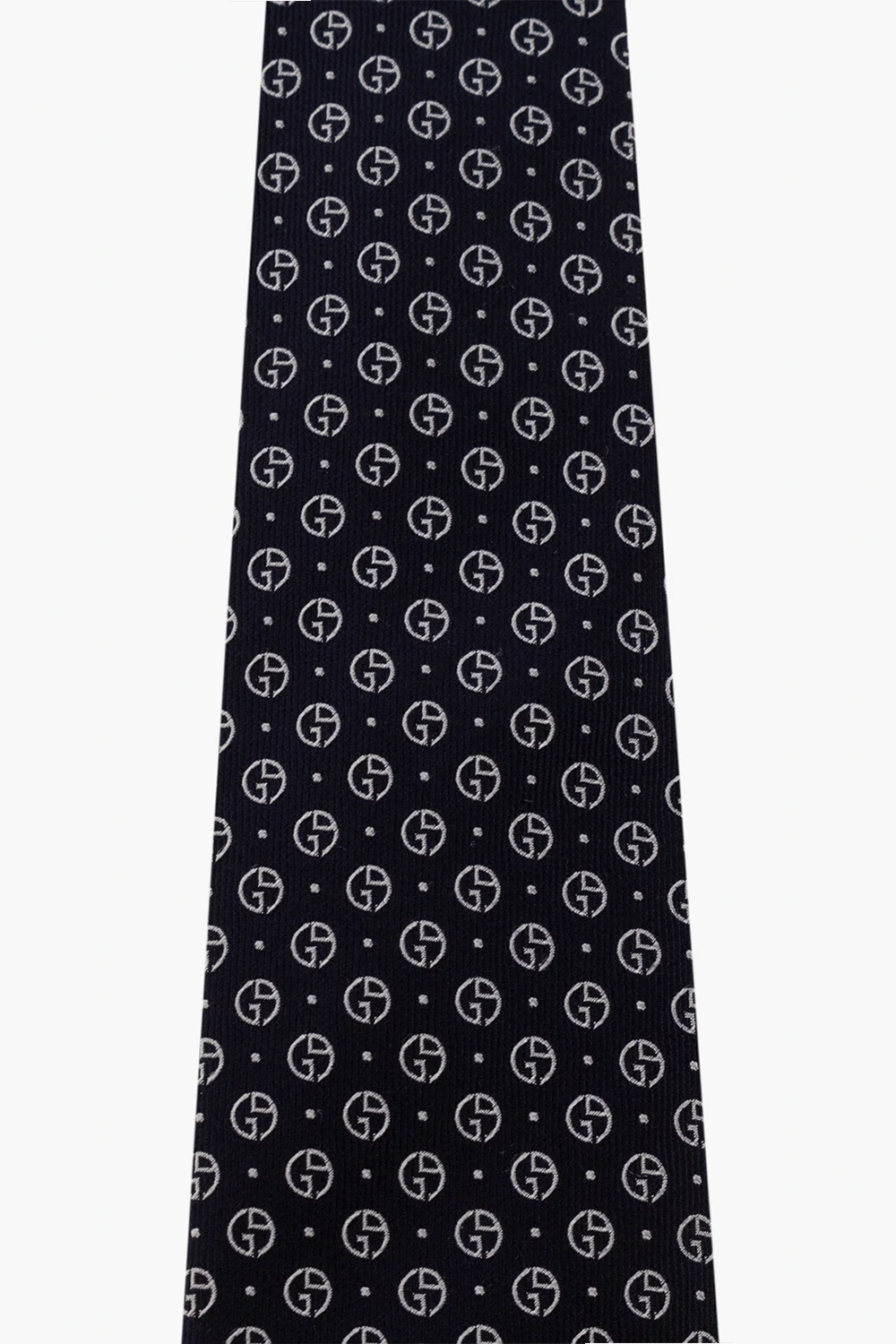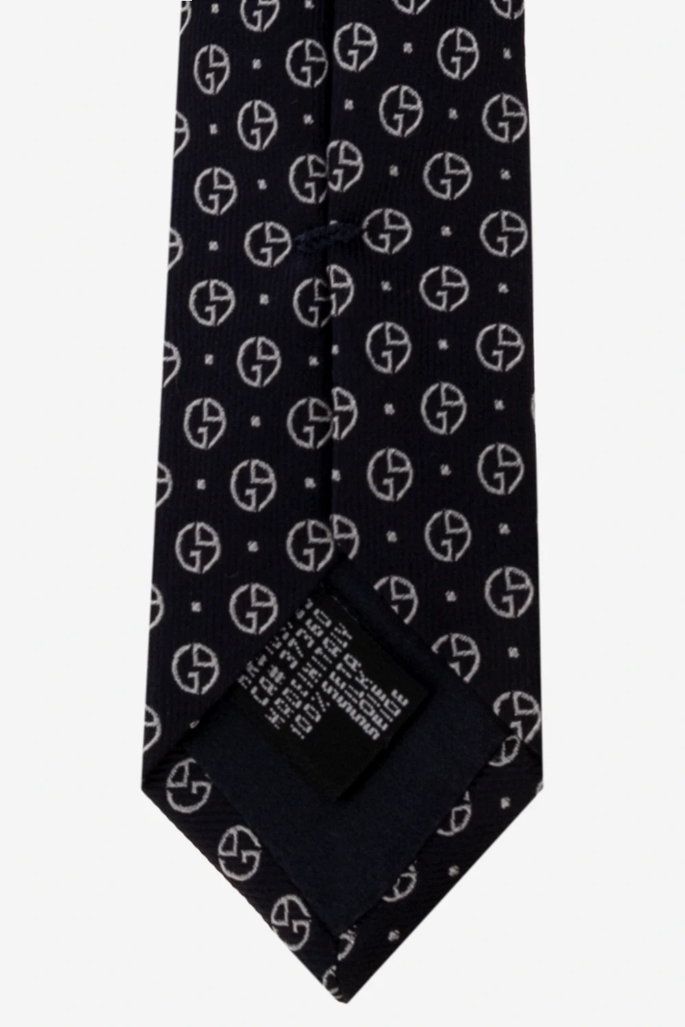 Navy blue and cream tie from Giorgio Armani. Made of silk, this item features a geometrical pattern.