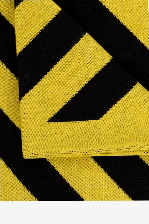 Yellow and black scarf from Off-White Kids. Made from cotton, this item features a black pattern accompanied by a logo.