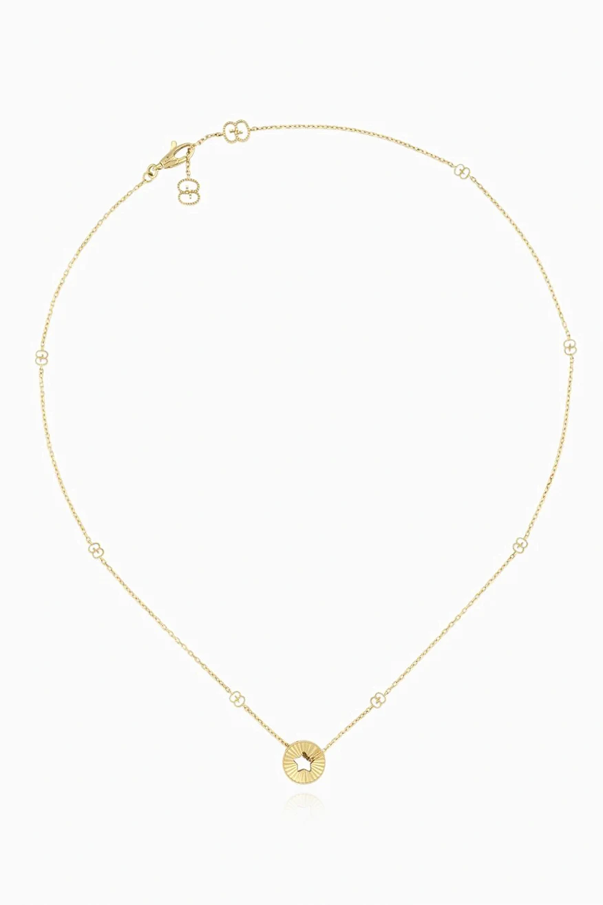 Gold ‘Icon Heart’ necklace from Gucci. Made of 18k yellow gold, this item is engraved by a heart motif and fastens with a lobster clasp.