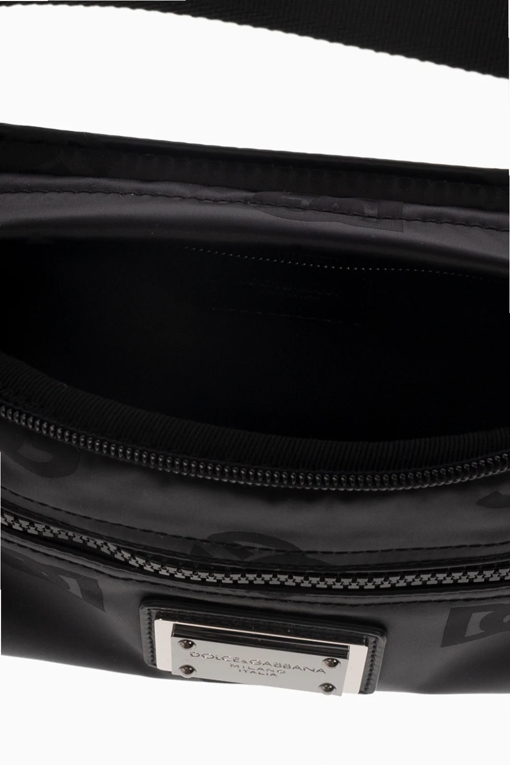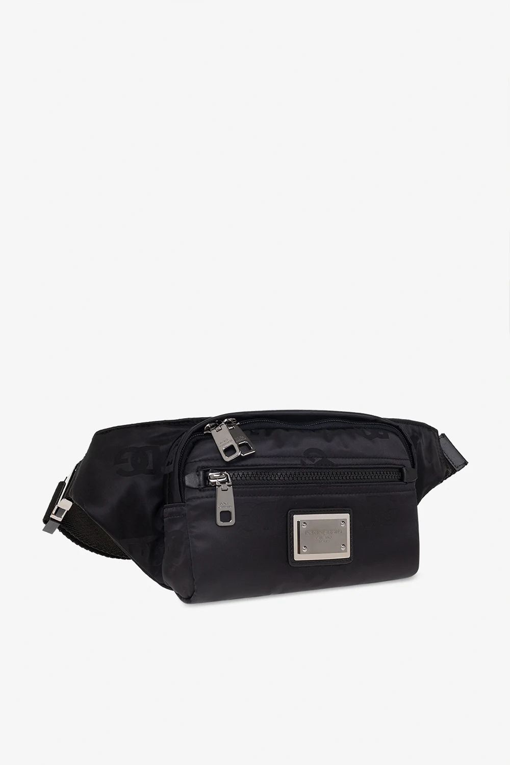 Black ‘Nero Sicilia DNA Small’ belt bag from Dolce & Gabbana. Crafted from satin material, this design fastens with a two-way zipper and showcases a jacquard logo pattern. It is complete with a zip front pocket accompanied with a logo-engraved plaque in silver-tone, one slip pocket and one zip pocket at the back, an adjustable strap with a metal buckle and one internal compartment.