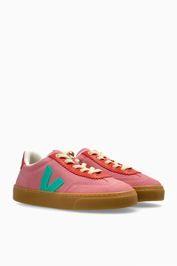 Finely textured leather and synthetic panels offer dimension, while beige laces provide an elegant contrast against ombré pink side panels. The bright red panel near the laces and light brown rubber sole ensure both visual appeal and everyday durability. Exclusively designed by Veja Kids , this limited-edition sneaker is a celebration of youthful charisma and refined taste.