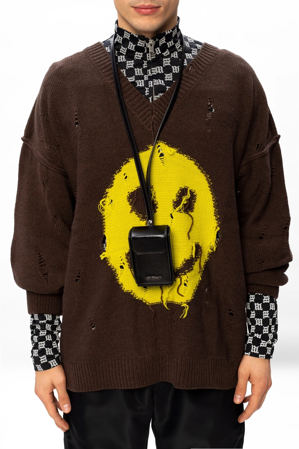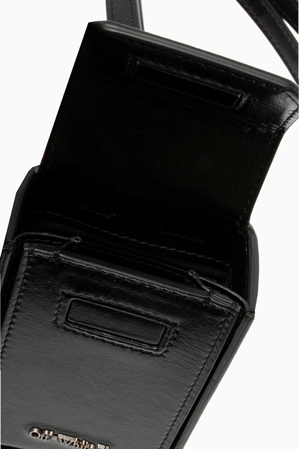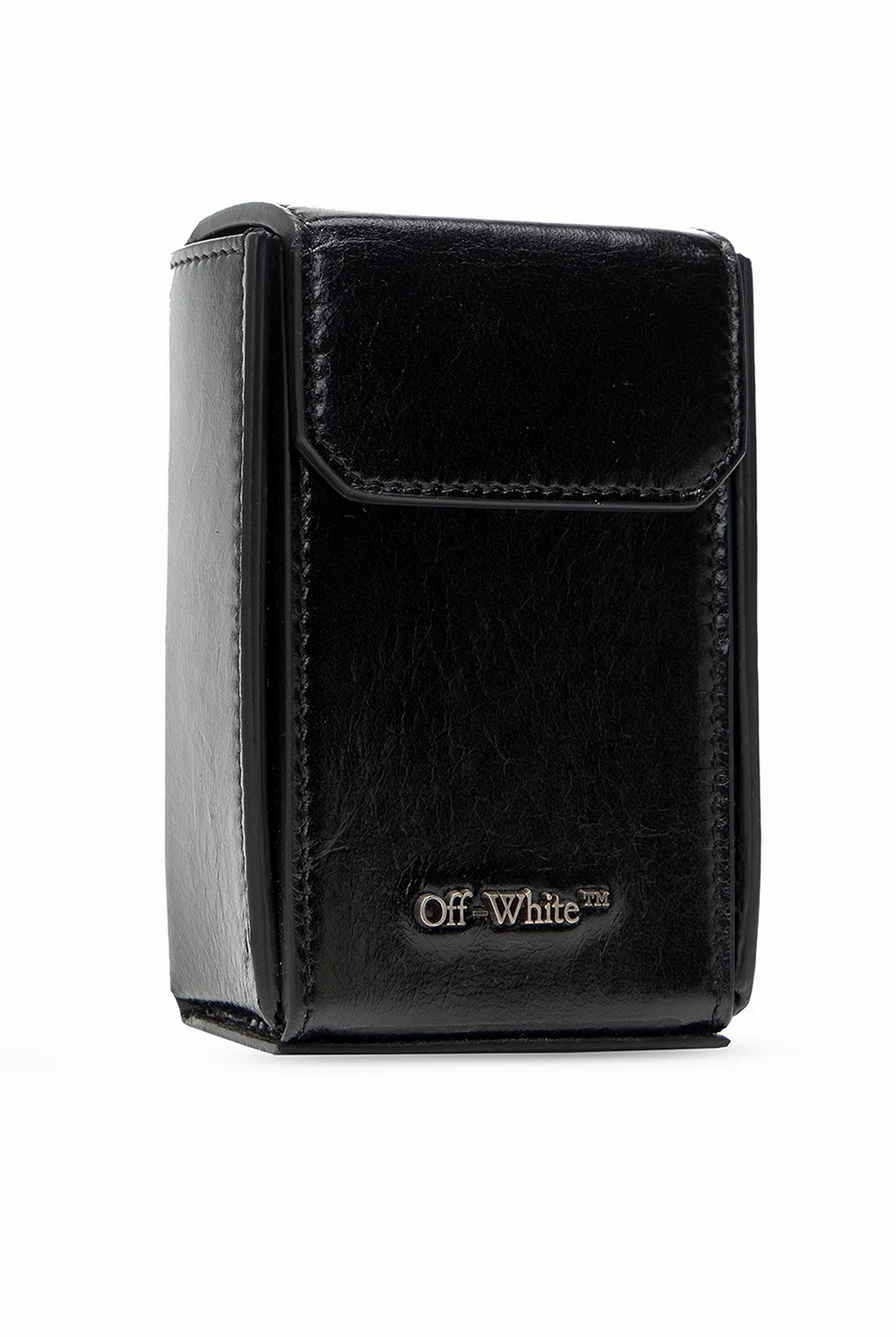 Black cigarette case from Off-White. Crafted from leather, this accessory fastens via magnetic press button and employs silver-tone logo detail, a detachable strap and one internal compartment.