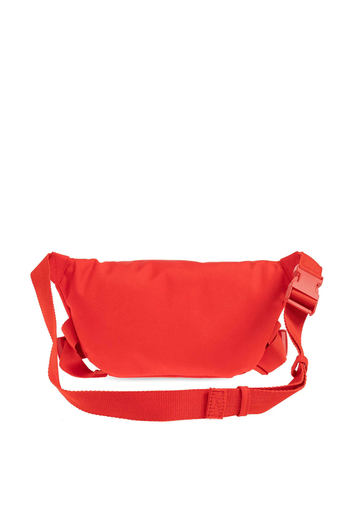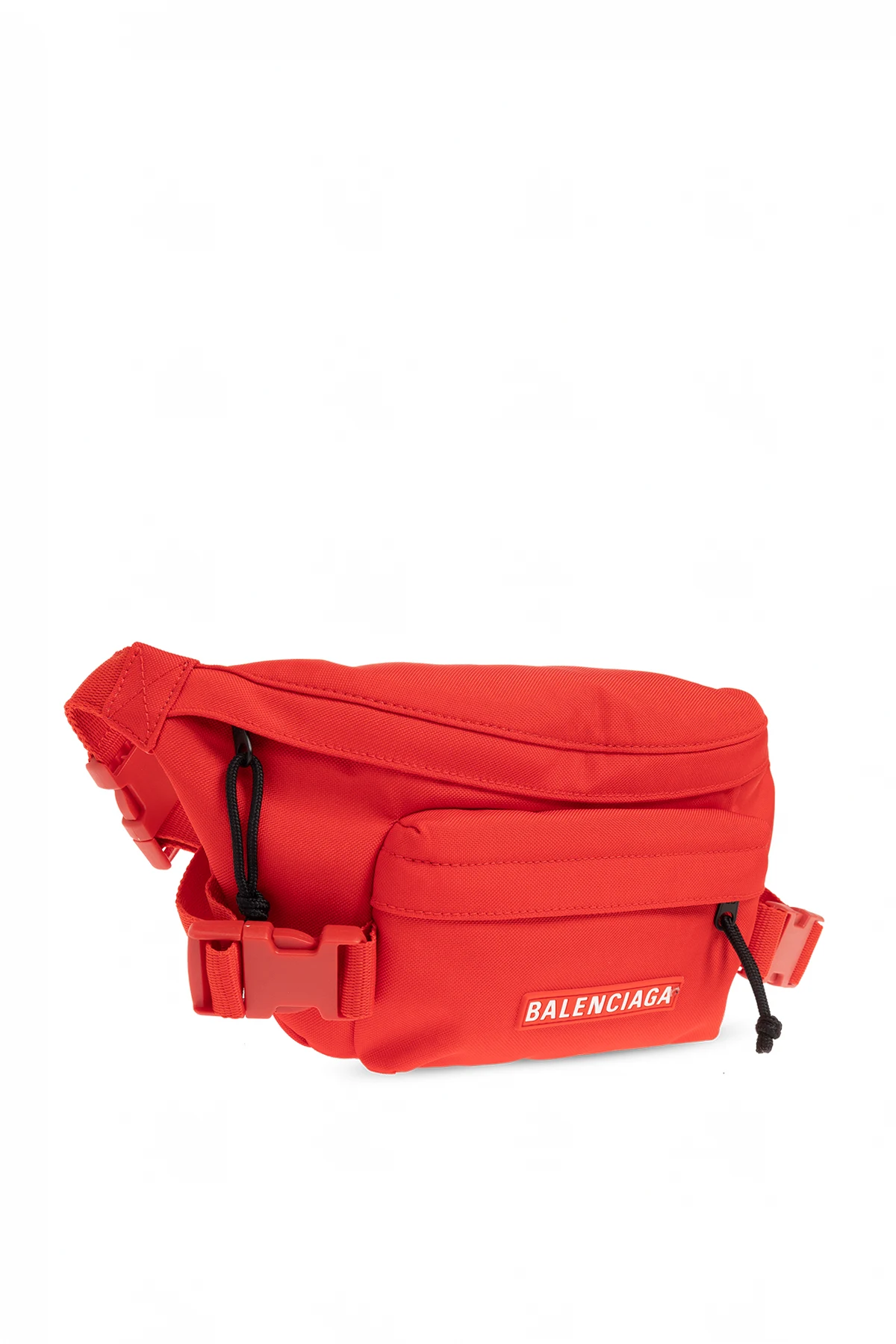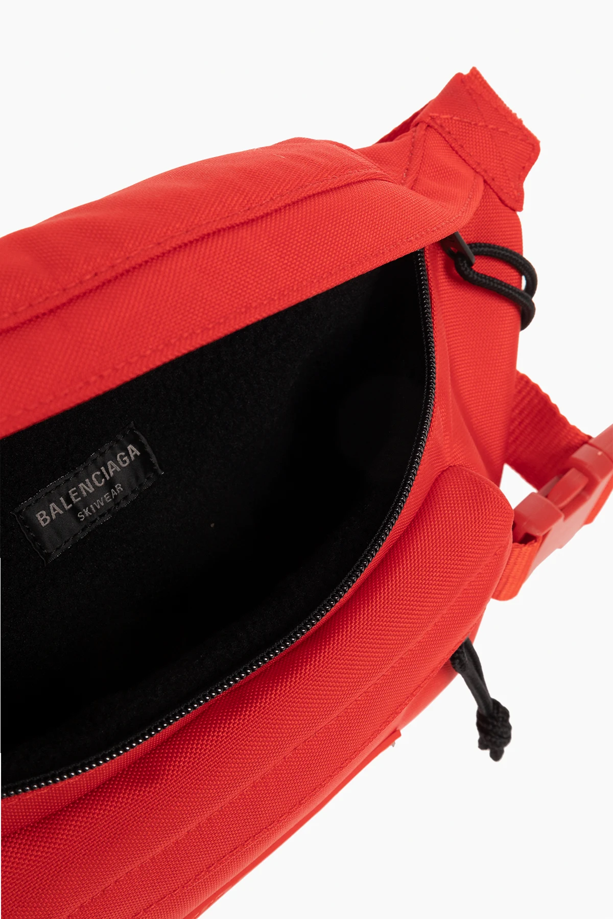 Red belt bag from Balenciaga, the ‘Skiwear’ collection. Fastened with a zip, this design features a white logo pattern as well as a zipped front pocket and strap.