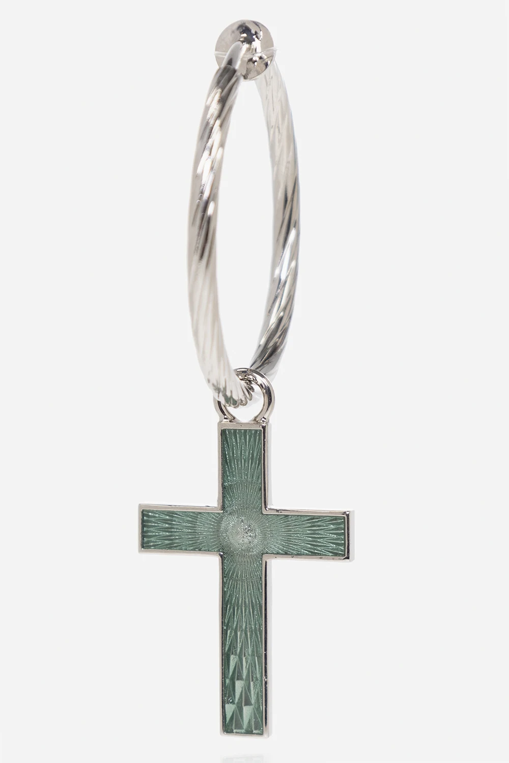 Single earring in silver-tone from Gucci. Made of brass, this item showcases engraved detailing and an enamelled green pendant cross with the brand\'s ‘Interlocking G’ logo.