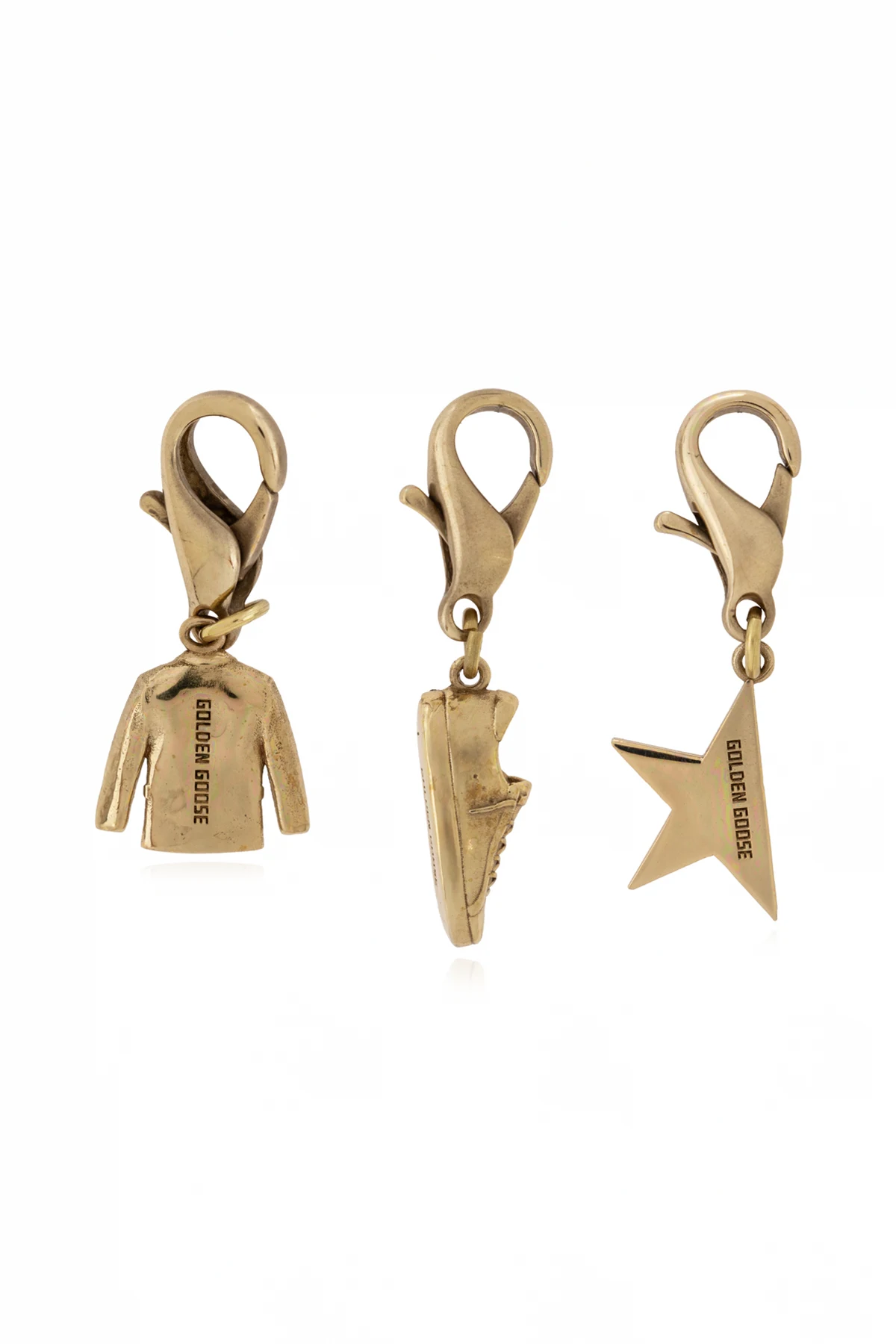 Introducing the exquisite Golden Goose Keychain Collection, a trio of miniature three-dimensional figurines that redefine elegance and sophistication in accessory form. Crafted from 100% brass, these keychains exude a luxurious golden hue, making them a perfect testament to the impeccable craftsmanship synonymous with the Golden Goose brand. The collection features a meticulously detailed blazer, complete with lapels, buttons, and pocket accents, suggesting a fabric texture, a sporty-styled shoe with distinct lace and sole patterns, and a sleek, simple star design, each adorned with an engraved inscription that adds an air of mystery to their allure. Designed to clip effortlessly onto keys or other accessories, these keychains serve not just as functional items but as a statement of unrivaled style. Whether attached to a bracelet, enhancing the look of a handbag, or simply holding your keys, these keychains are versatile and unisex, making them an ideal addition to any collection. Their golden color and quality materials position them as high-end accessories, reminiscent of exclusive brands and evoking a sense of luxury. Why Purchase This Product? Exquisite Craftsmanship: Made from 100% brass, ensuring durability and a premium feel. Unique Designs: The blazer, shoe, and star designs are intricately detailed, offering a touch of sophistication. Versatile Use: Perfect as a decorative accessory for bags, keys, or personal items, enhancing their aesthetic appeal. Luxurious Appeal: The golden hue and quality material suggest exclusivity, making them desirable for those with a taste for luxury.