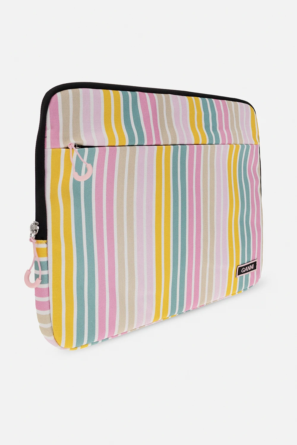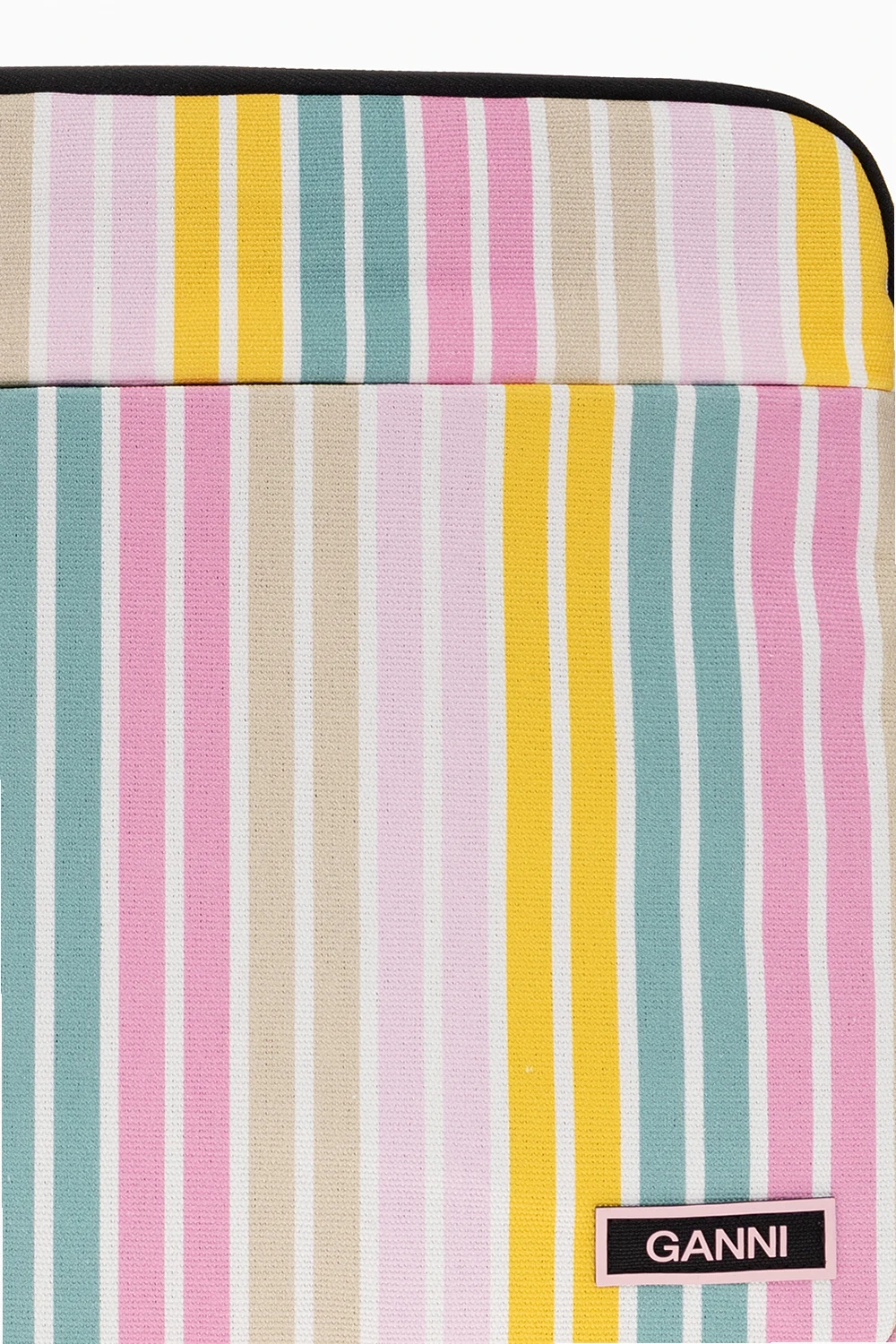 Multicolored laptop bag 13\" from Ganni. Made of organic cotton, this item is complete with a zip fastening, stripe pattern, logo patch, front zip pocket, handle at the back and one internal compartment with one slip pocket.