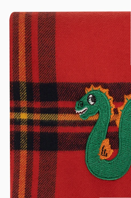 Red scarf from Mini Rodini. Crafted from organic cotton with the GOTS certificate, this item features a black and yellow check pattern and colourful animal embroidery.