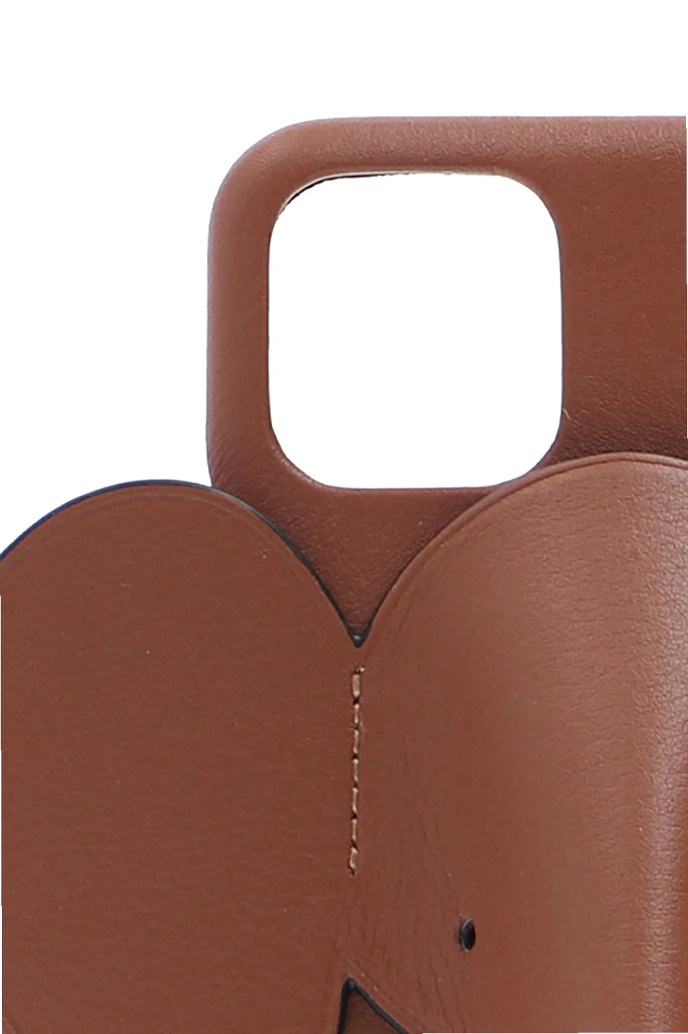 Brown iPhone 11 case from Loewe. Crafted from calf leather, this item comes with an elephant print, logo and removable strap.