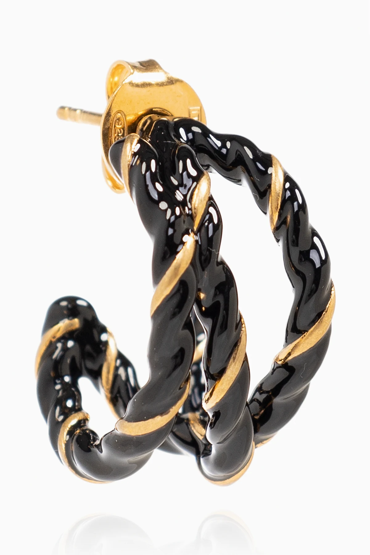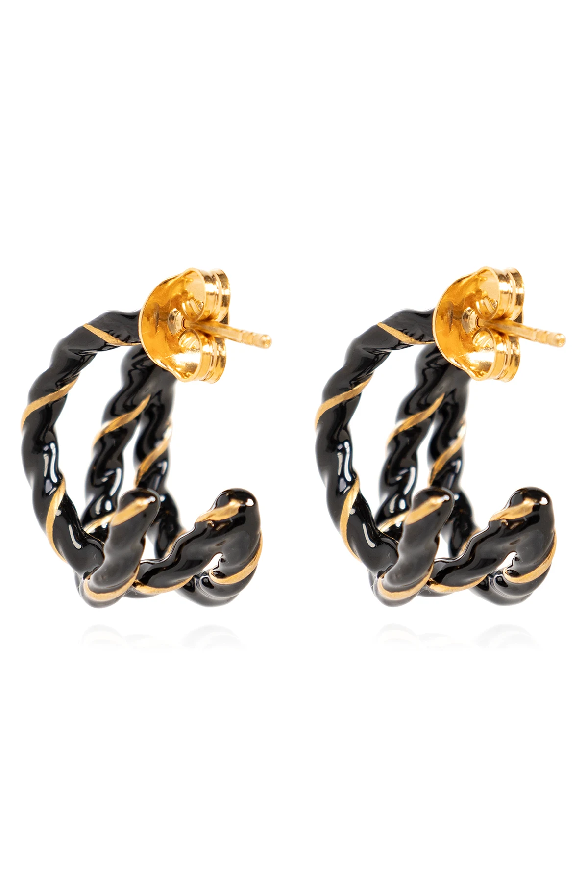 Black and gold-tone hoop earrings with push back closure from Maison Margiela. Made of brass.