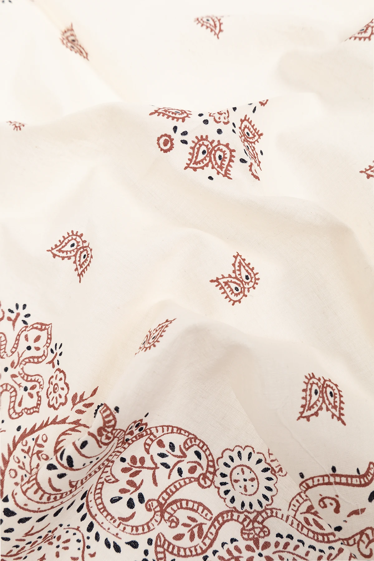 Cream, black and maroon scarf from Bonpoint. Made of cotton, this design features a paisley pattern and a logo.