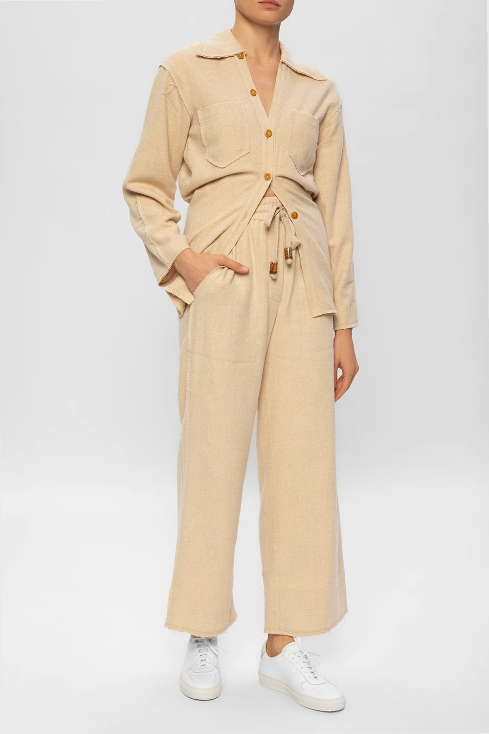 White ‘Bball 70’s’ sneakers from Common Projects. Crafted from leather, this lace-up pair is set on a white rubber sole and showcases exposed stitching details and signature gold-tone graphic print.