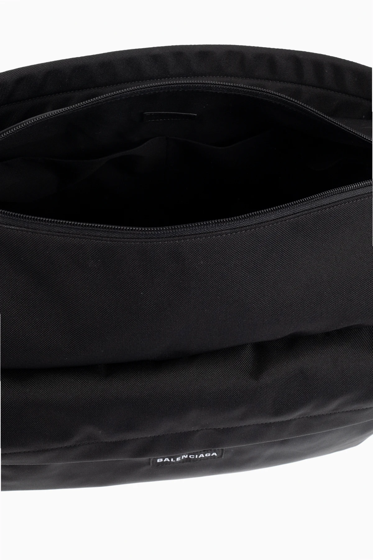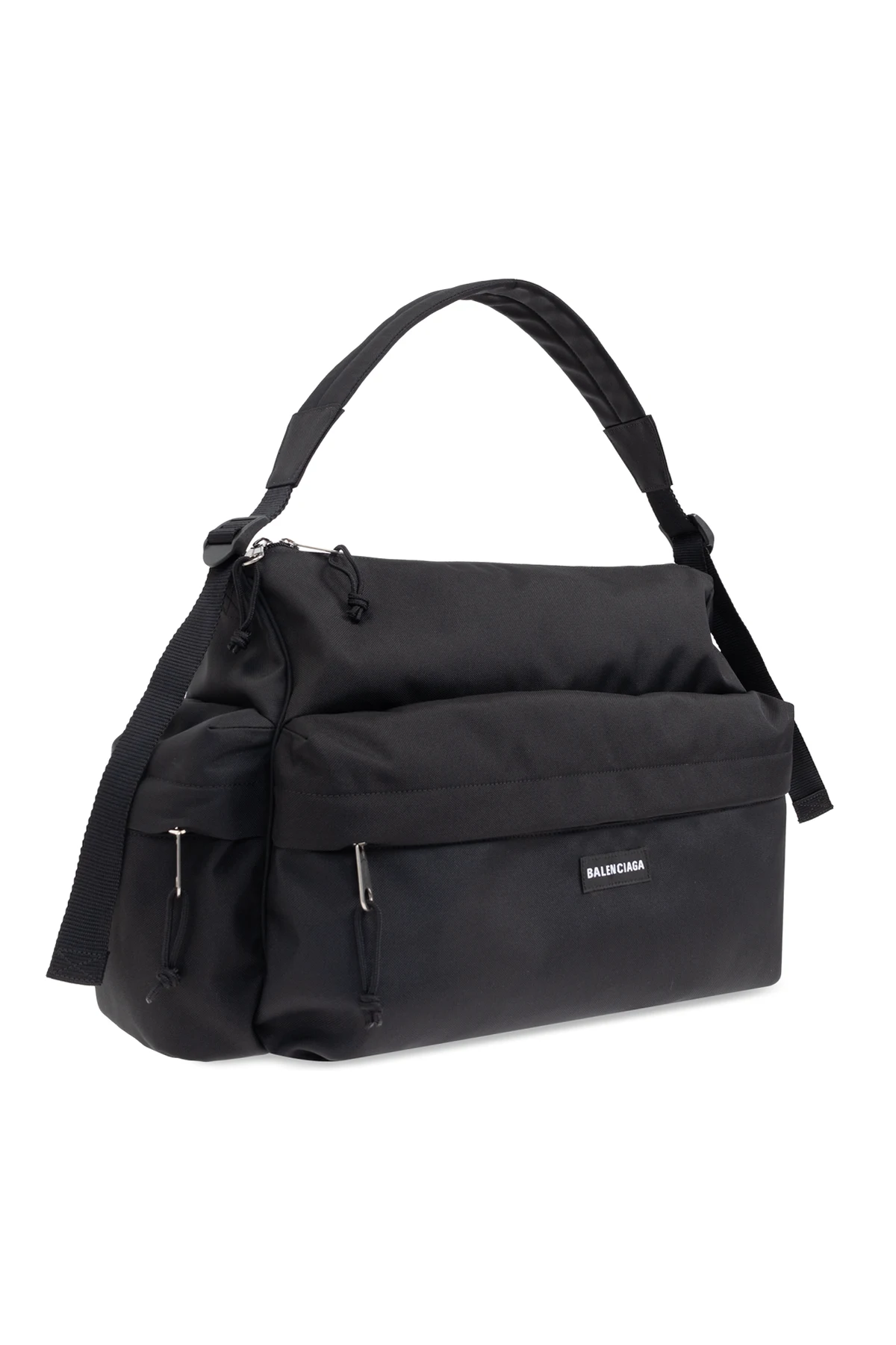 Introducing the Explorer Multi Week Medium, a quintessential piece from the illustrious house of Balenciaga. This elegant black carry-on bag epitomizes the seamless fusion of style and practicality, making it an ideal companion for both short escapades and daily endeavors. Crafted from robust nylon with a soft cotton interior, it exudes a contemporary allure while ensuring resilience. The bag\'s rectangular silhouette with rounded corners offers a sophisticated aesthetic, accentuated by the subtle Balenciaga logo in a contrasting hue. Functionality reigns supreme with its solid, versatile handles and a regulable shoulder strap. Discover three zippered pockets on the exterior and a spacious interior compartment with two slip pockets, providing ample room for essentials. Why choose this product? Exquisite design from a visionary fashion house Durable materials for lasting use Elegant black color for universal appeal Ample storage with multiple secure pockets Versatile carry options with adjustable strap