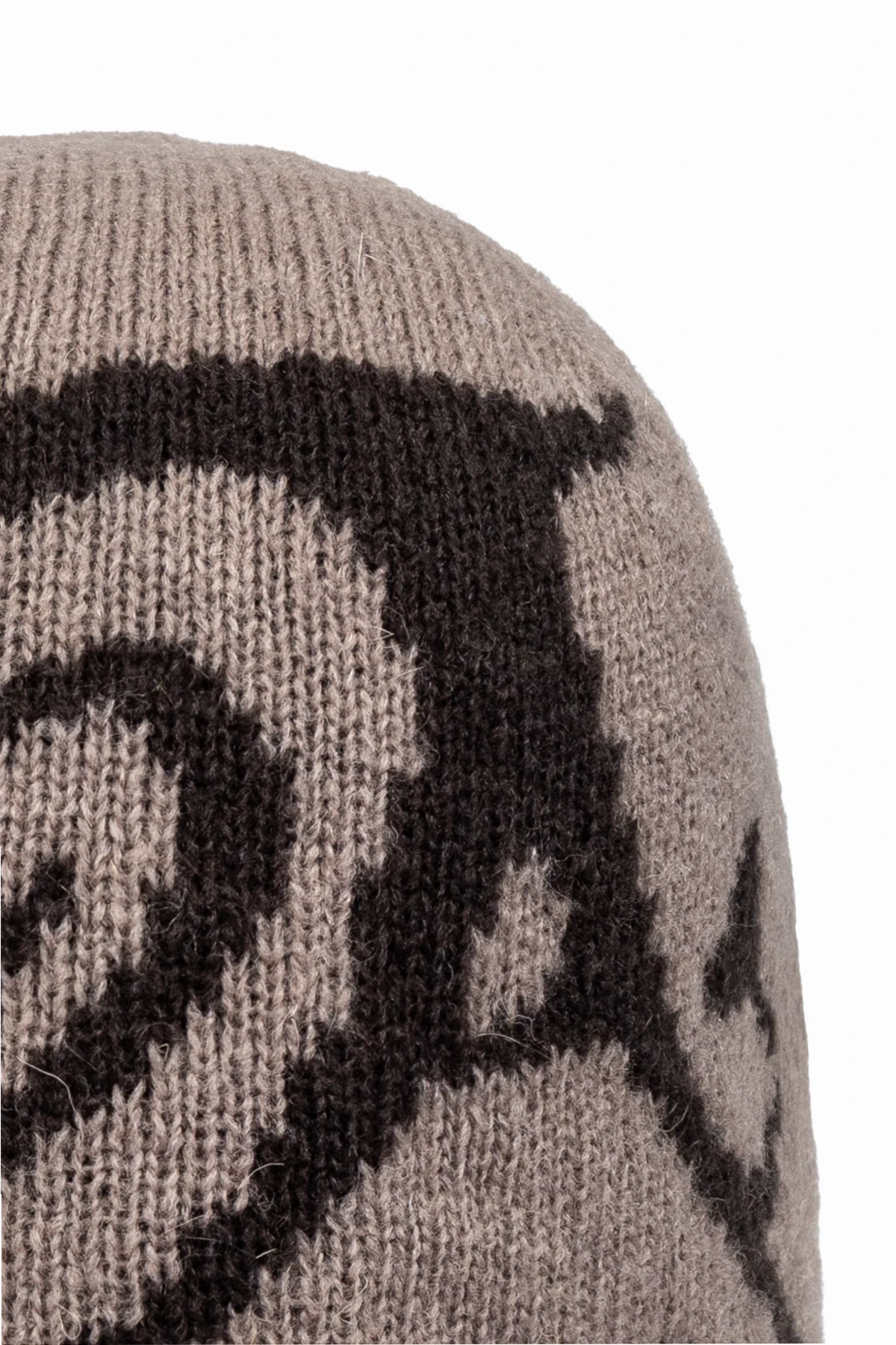 Introducing the Patterned Beanie from the exclusive collection by renowned designer ROA. This beanie epitomizes sophistication and contemporary fashion, blending seamlessly with both urban and outdoor aesthetics. Crafted from an exquisite blend of materials, including acrylic, polyamide, mohair, and wool, this beanie offers unparalleled softness and elasticity, ensuring utmost comfort and warmth. The dominant beige hue is elegantly complemented by a bold, dark abstract pattern, creating a striking visual contrast that is both modern and timeless. The beanie features a classic, snug-fitting design that effortlessly adapts to the contours of your head. The asymmetrical pattern, covering a significant portion of the hat, adds an artistic and unique touch, highlighting the brand\'s dedication to innovative and experimental construction techniques. Why Choose This Product? Luxurious Materials: A premium mix of acrylic, polyamide, mohair, and wool for superior comfort. Unique Design: Asymmetrical abstract pattern that stands out. Timeless Elegance: Classic beanie shape with a contemporary twist. Renowned Designer: Created by ROA, known for blending technology and fashion. Versatile Accessory: Perfect for both casual and sophisticated ensembles.