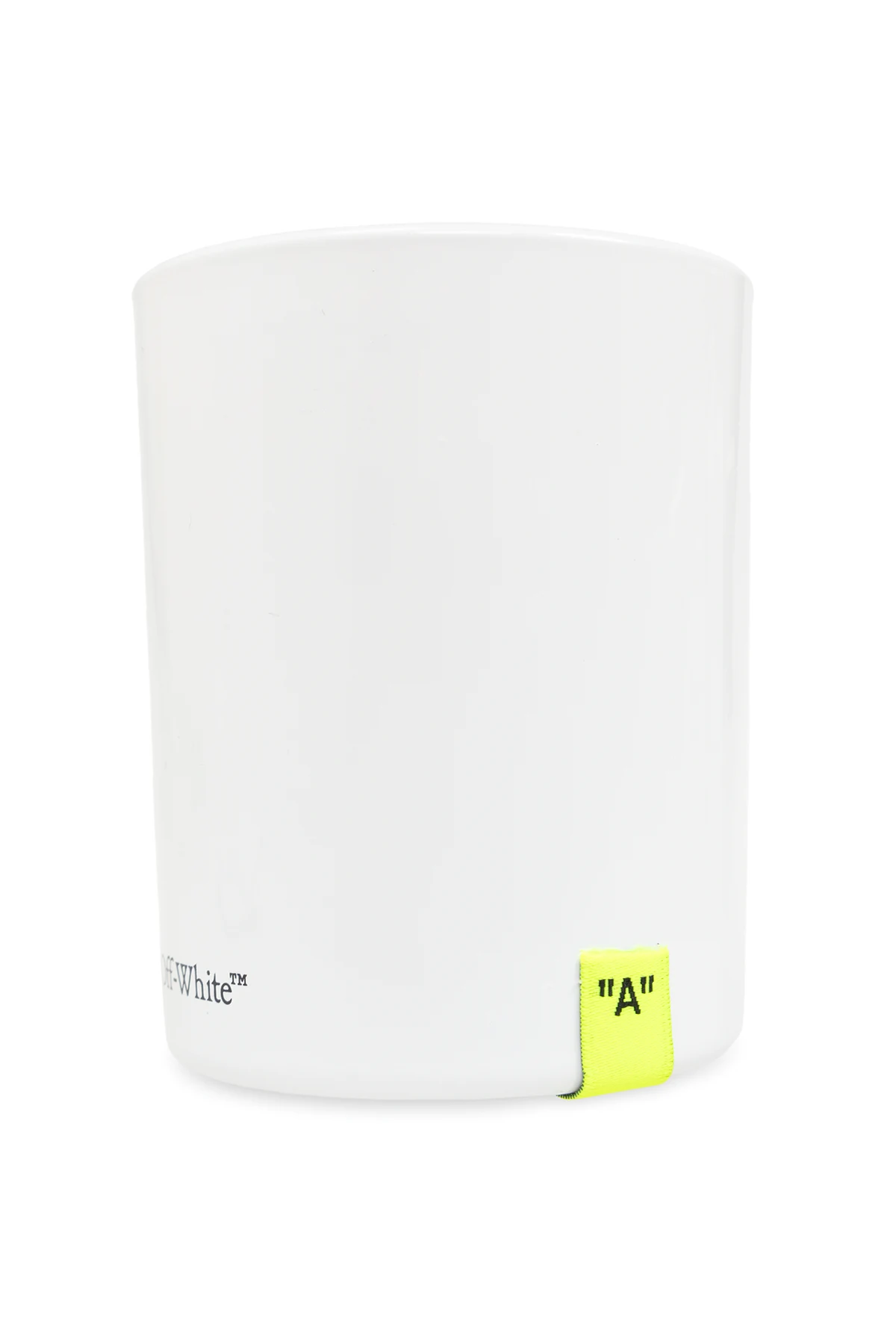 Introducing the Off-White™ \'Arid Earth\' Candle, a quintessence of minimalist elegance and a testament to refined taste. Crafted from 100% premium glass, this candle embodies purity and simplicity with its sleek, cylindrical form. The piece is adorned with thought-provoking inscriptions, including the playful \"FOR SMELLING\" at its zenith and the iconic Off-White™ branding near the base, both set against the candle\'s pristine white backdrop. The candle\'s exclusive character is further accentuated by a vibrant yellow label marked with \"™A\", adding a dash of color and uniqueness. This decorative piece transcends mere functionality, inviting interpretation and reflection, making it a sophisticated addition to any interior decor collection. Why Purchase This Product? Elegant design with minimalist aesthetics Exclusive Off-White™ branding and unique inscriptions Made from 100% high-quality glass for durability and beauty Features a distinctive yellow label, enhancing its uniqueness Ideal for adding a touch of sophistication to any room