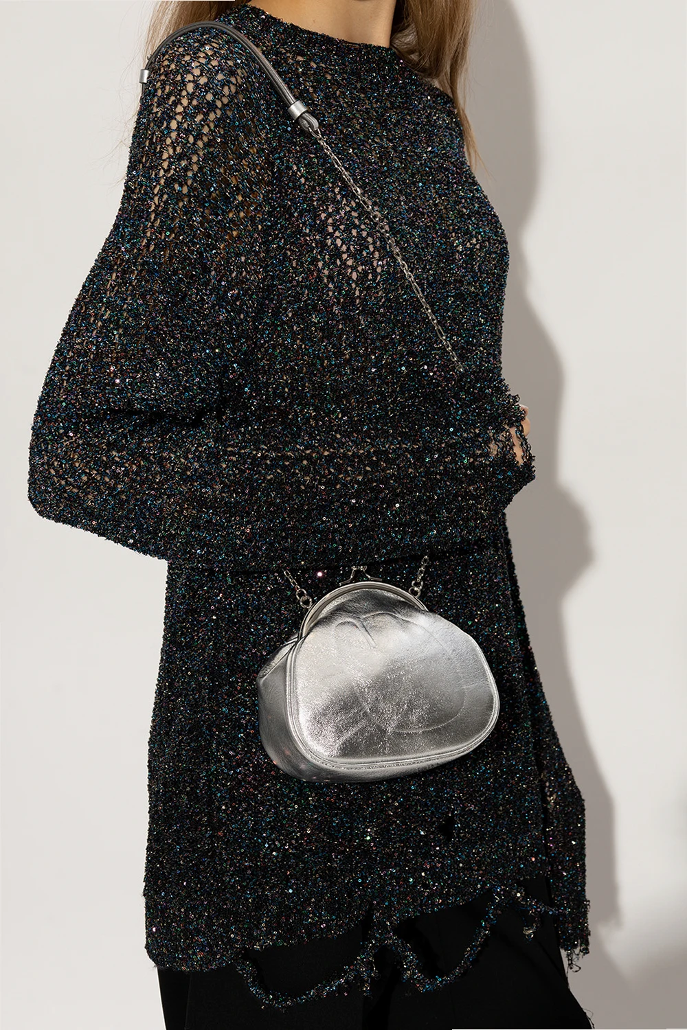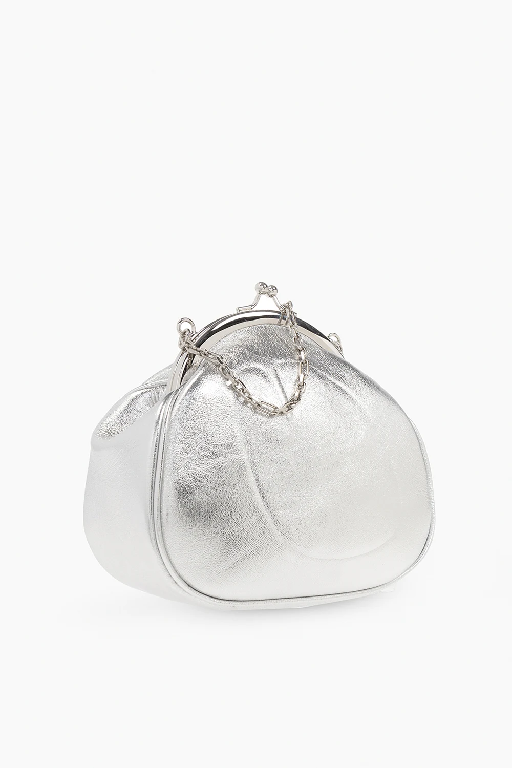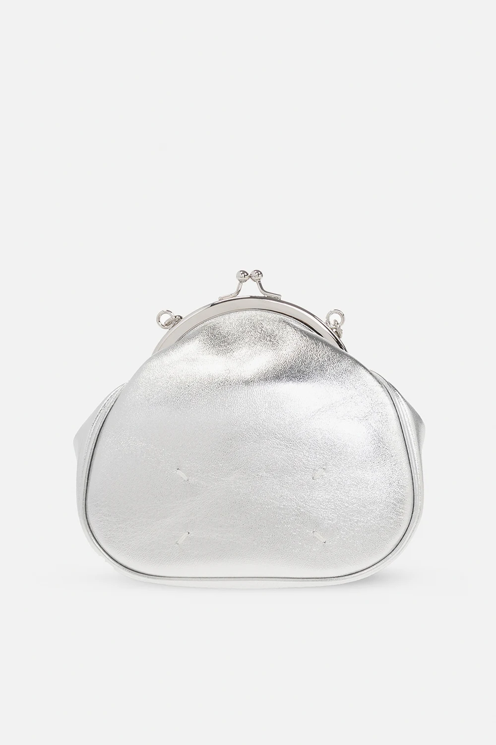 Silver-tone \'Tabi Frame\' shoulder bag from Maison Margiela. Crafted from faux leather, this design showcases an embossed logo, shoulder strap, silver-tone metal hardware and one internal compartment.