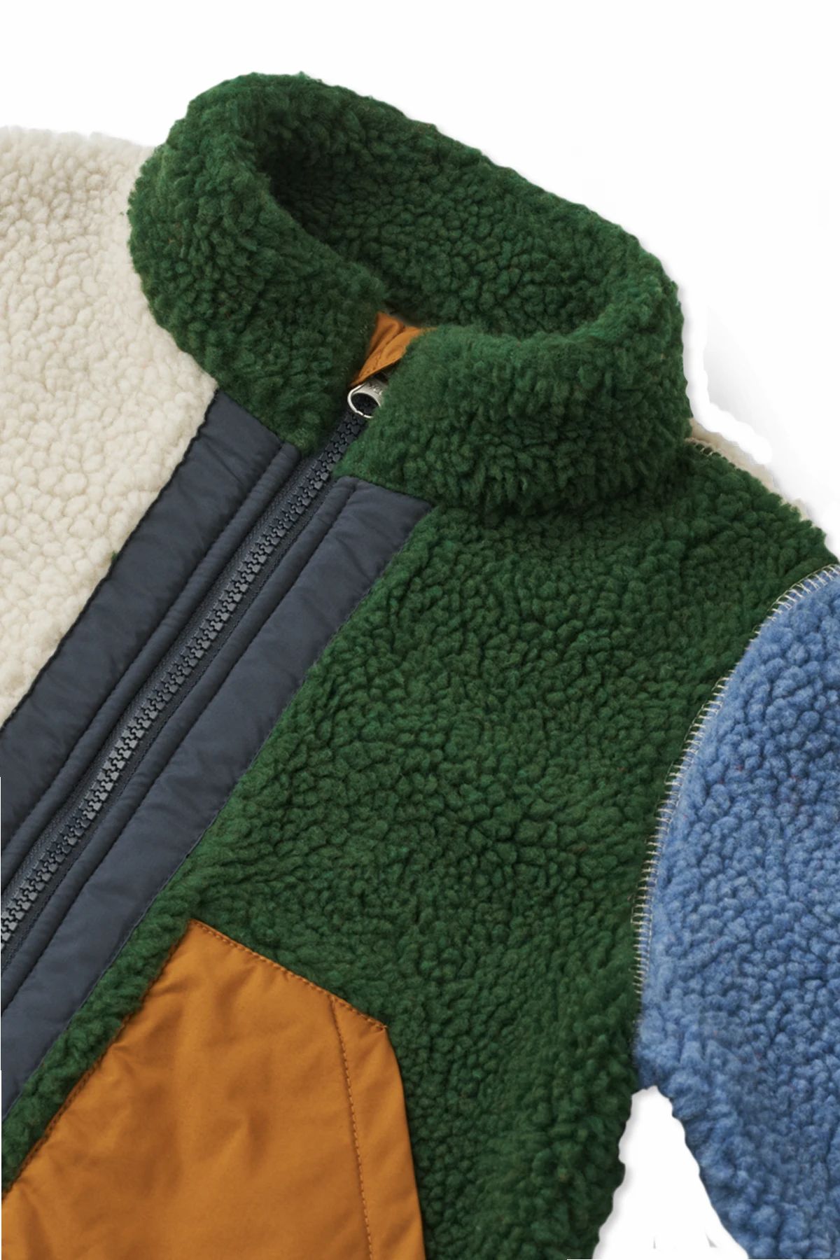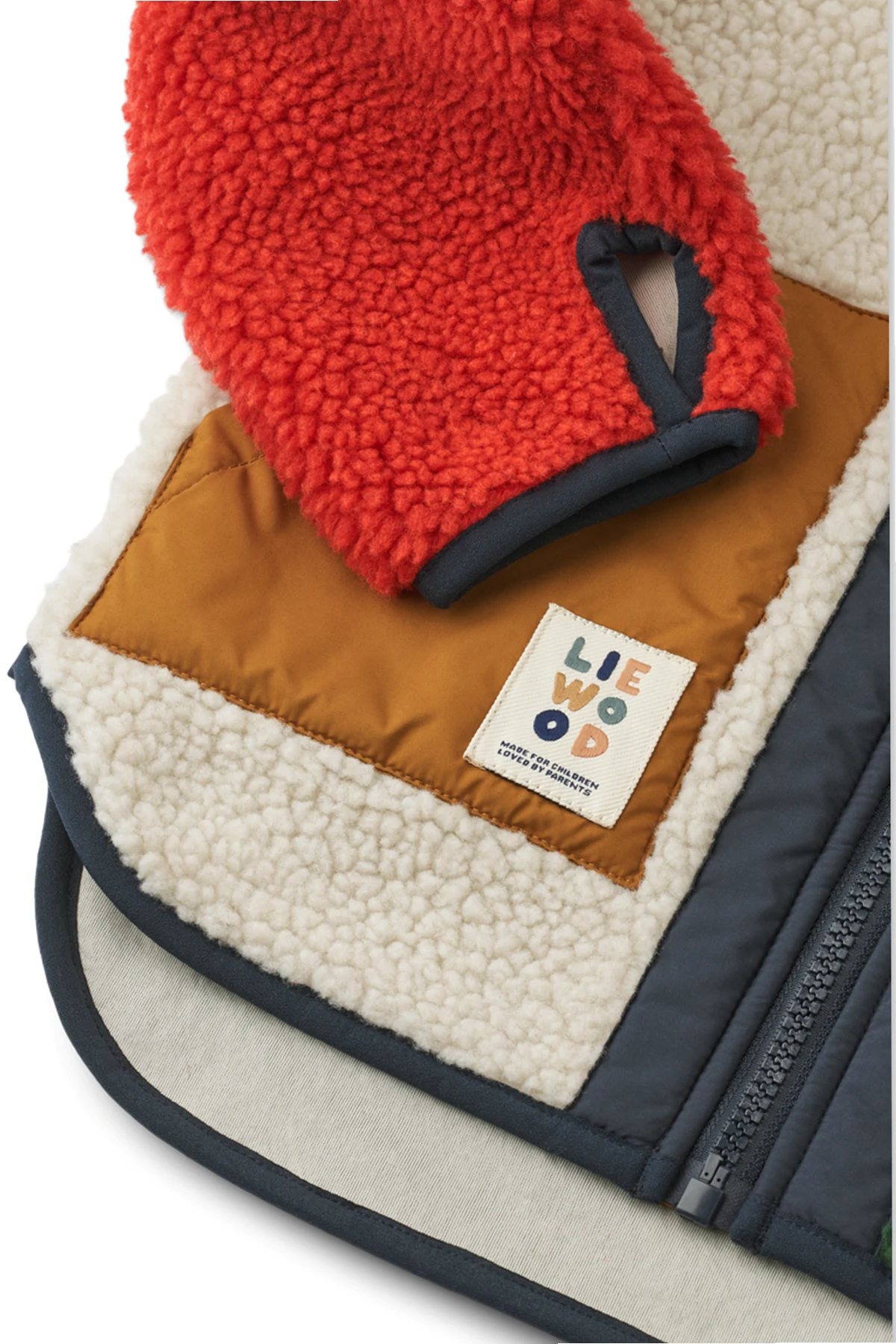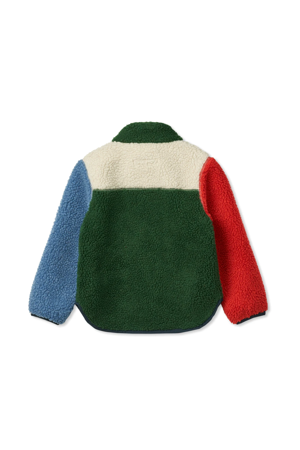 Introducing the Liewood Fleece Jacket – a vibrant masterpiece of children\'s fashion, meticulously crafted from soft recycled polyester fleece to ensure unparalleled warmth and comfort. This multicolored jacket boasts a harmonious blend of red, green, blue, and cream hues, exuding a playful yet sophisticated aura. The jacket\'s classic silhouette features long sleeves and a center zip, offering a timeless appeal that seamlessly integrates into any outfit. Notably, it is adorned with two large, mustard-colored front pockets, one of which is embellished with the designer\'s distinctive logo patch, adding a touch of exclusivity. Designed with practicality in mind, the jacket\'s collar and cuffs are finished to enhance both style and protection against the cold, making it an essential addition to any child\'s wardrobe. Perfectly tailored for boys aged 4-14, this piece embodies casual elegance, suitable for both everyday wear and special occasions. Why Choose This Product? Luxurious warmth and comfort from soft fleece material. Striking multicolor design for a standout look. Functional with two large, contrasting pockets. Eco-friendly, made from recycled materials. Versatile style for casual and special occasions.