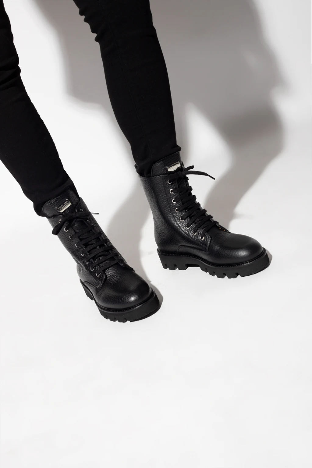 Black ankle boots from Philipp Plein. Set on a black rubber sole, this lace-up pair is embellished with silver-tone studs.