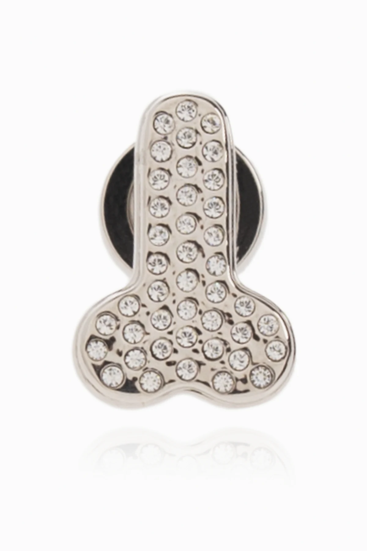 Silver-tone mono earring from JW Anderson. Made of brass and encrusted with glistening crystals, this item secures with a logo-engraved push back closure.