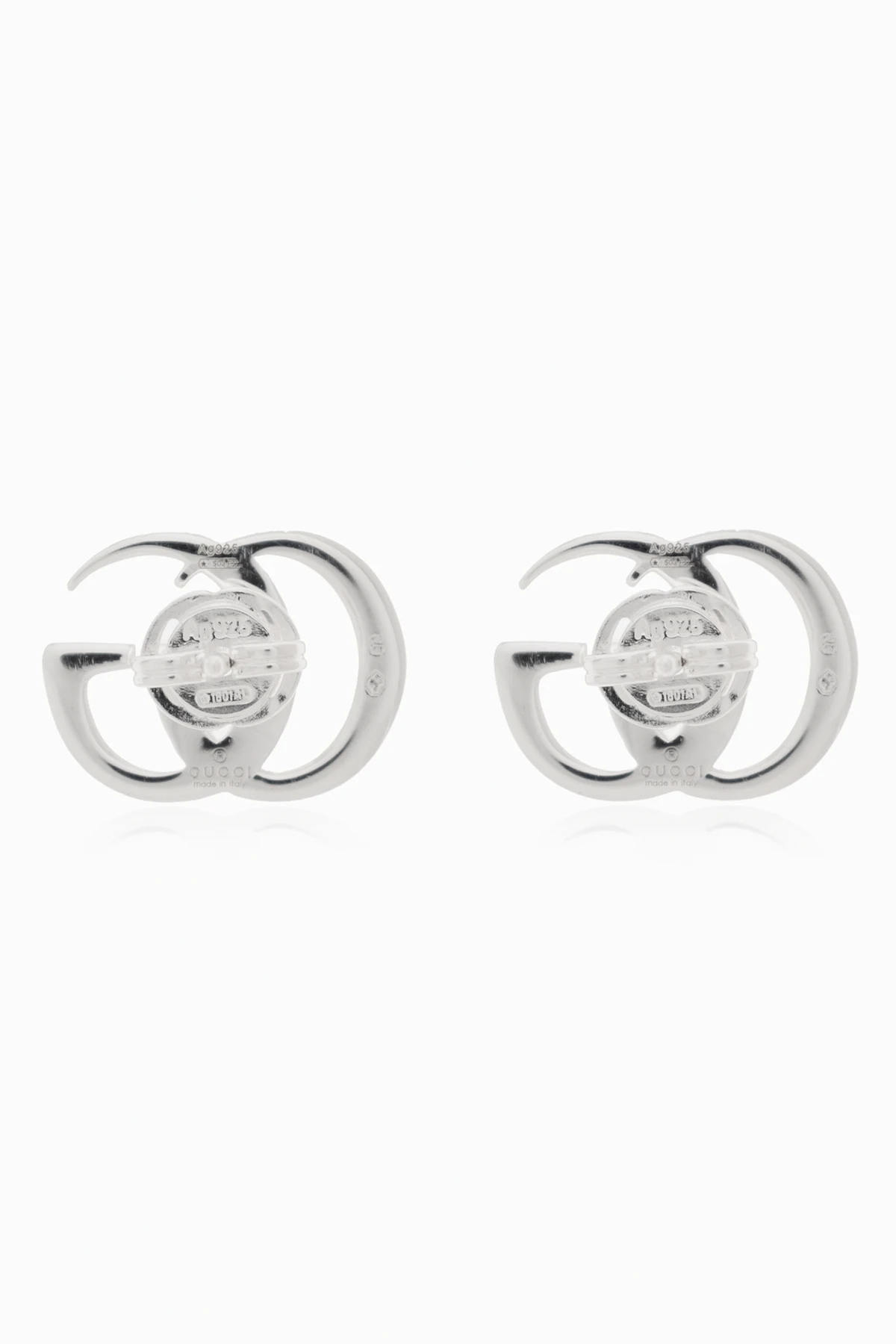 Discover the epitome of refined elegance with the Srebrne kolczyki w kształcie logo by Gucci. Exquisitely crafted from lustrous silver, these earrings embody a luxurious allure. The iconic design, featuring two interwoven \"G\" letters, is a hallmark of sophistication and subtlety, making them a captivating addition to any ensemble. Under the visionary guidance of Alessandro Michele, Gucci\'s creative direction has transformed to exude an innovative and opulent aesthetic for the 21st century. Immerse yourself in the brand\'s eclectic style, known for its expressive and avant-garde creations, which seamlessly blend Italian craftsmanship with modern luxury. The petite size of these earrings ensures they remain a discreet yet striking accessory, suitable for any occasion. Finished with meticulous attention to detail, they come with a secure post-back closure, ensuring both comfort and elegance. Dlaczego warto kupić ten produkt? Timeless design featuring the classic Gucci logo. Made from premium-grade silver for a lasting shine. Perfectly sized for a subtle yet impactful statement. Secure post-back closure for comfortable wear. Created under the esteemed creative direction of Alessandro Michele.