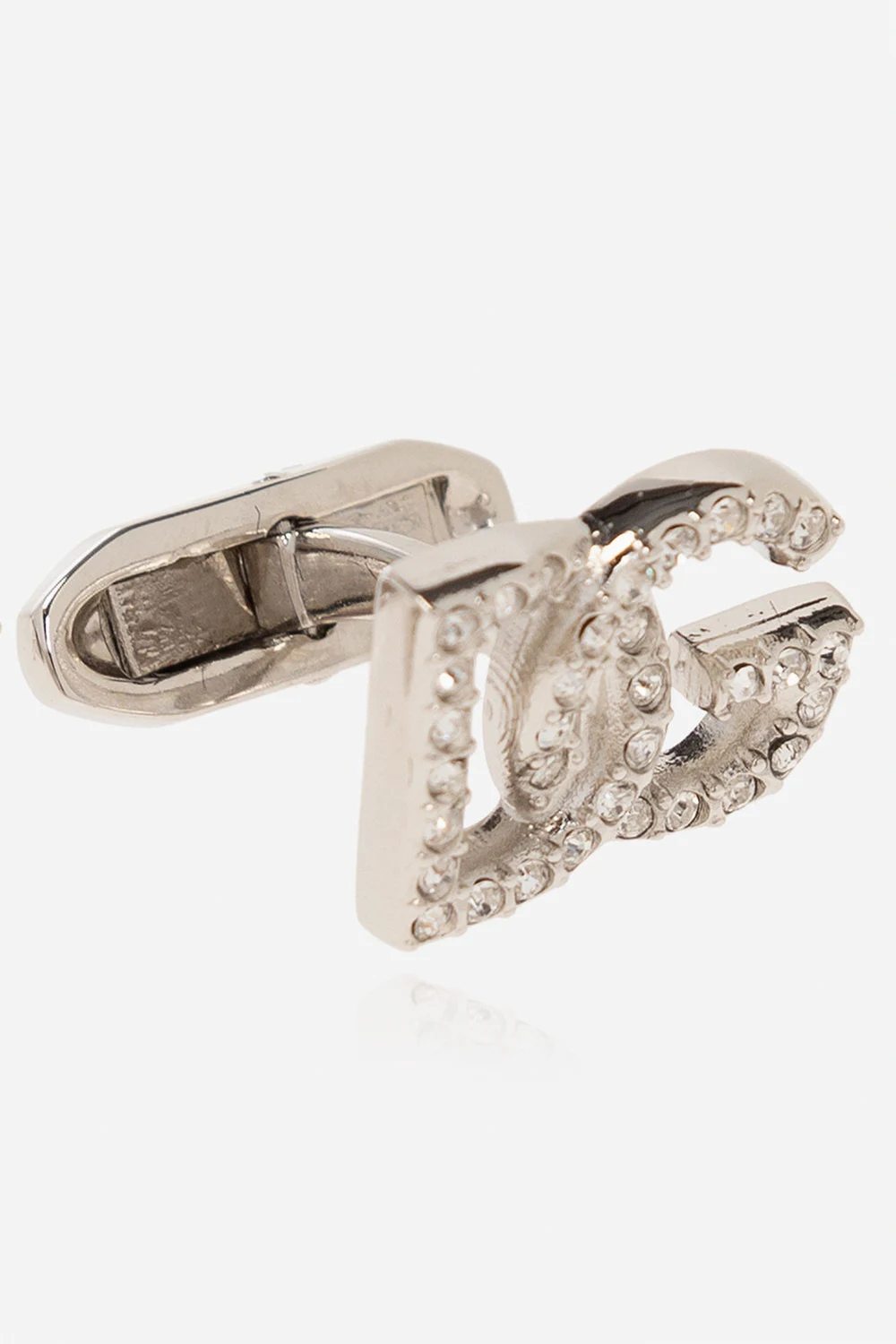Silver-tone cufflinks from Dolce & Gabbana. Crafted from brass, this pair features a logo embellished with crystals.
