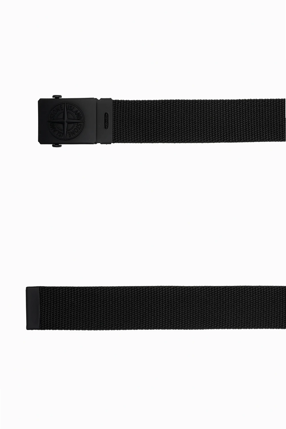 Black belt with a logo-embossed buckle from Stone Island Kids.