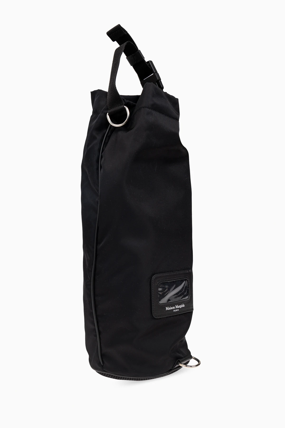 Introducing the High Tech Roll Shoulder Bag by the illustrious Maison Margiela, an epitome of avant-garde fashion. This cylindrical, elongated shoulder bag, reminiscent of a sleek roll, embodies both functionality and high-fashion appeal. Crafted from a durable, water-resistant synthetic material, the bag exudes a minimalist elegance in a dominant black hue. The front features a signature Maison Margiela Paris patch with a transparent window, adding a touch of refined branding. The iconic white \"X\" stitches, synonymous with Margiela’s design language, are meticulously placed, enhancing its unique aesthetic. Equipped with robust black straps and handles, and a metal element at the base for versatile attachment or suspension, this bag is as practical as it is stylish. The secure closure, via either a Velcro strip or a zipper, ensures the safety of your belongings, while the adjustable strap offers personalized comfort for both men and women. Why Choose This Product? Unisex Design: Suitable for both men and women. High-Quality Material: Made from water-resistant synthetic fabric. Unique Aesthetics: Features Maison Margiela\'s distinctive white \"X\" stitches. Functional: Adjustable strap and secure closure. Iconic Branding: Includes a Maison Margiela Paris patch.