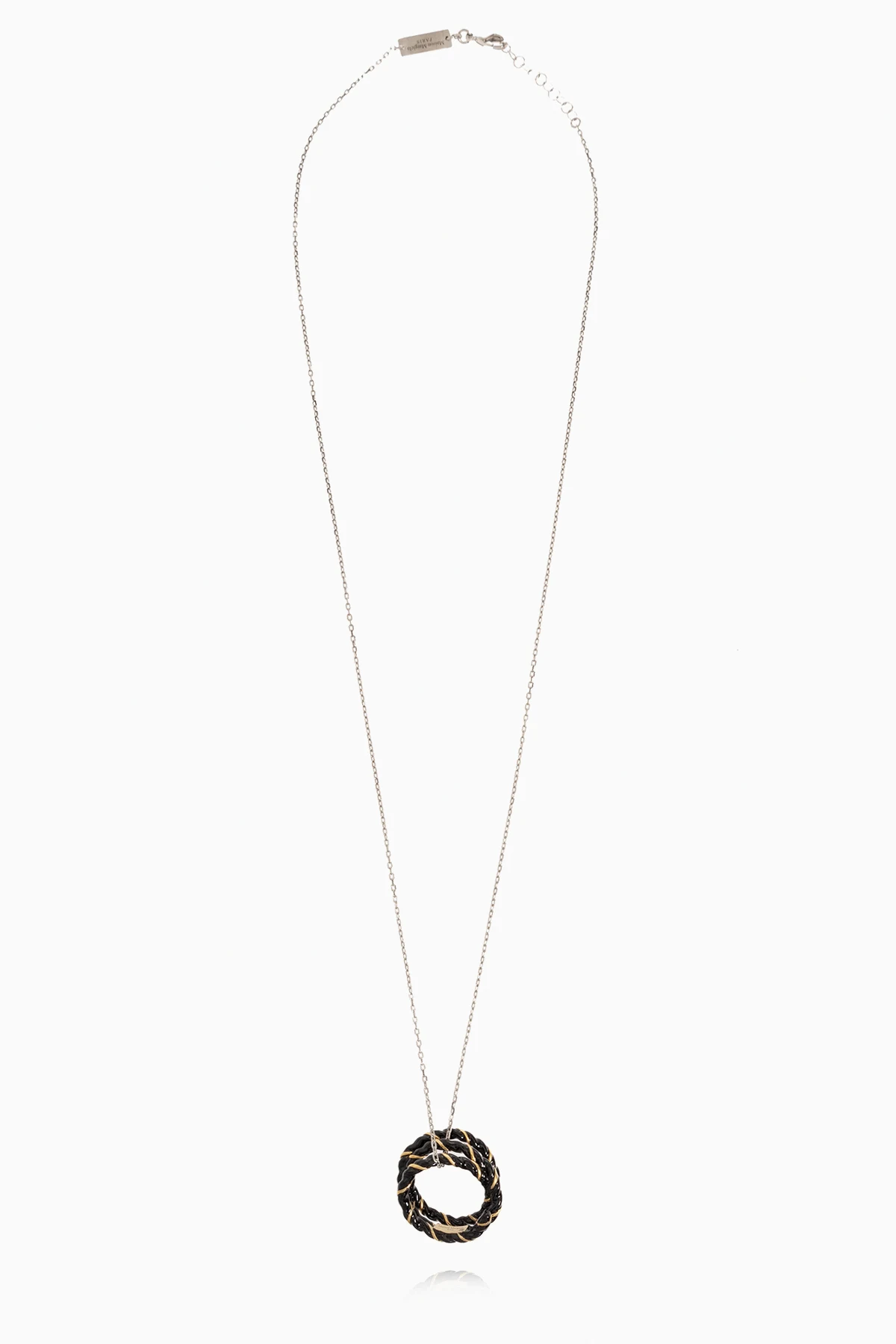Silver-tone necklace from Maison Margiela. Made of brass, this item adjusts via a lobster clasp and showcases a black and gold-tone pendant.