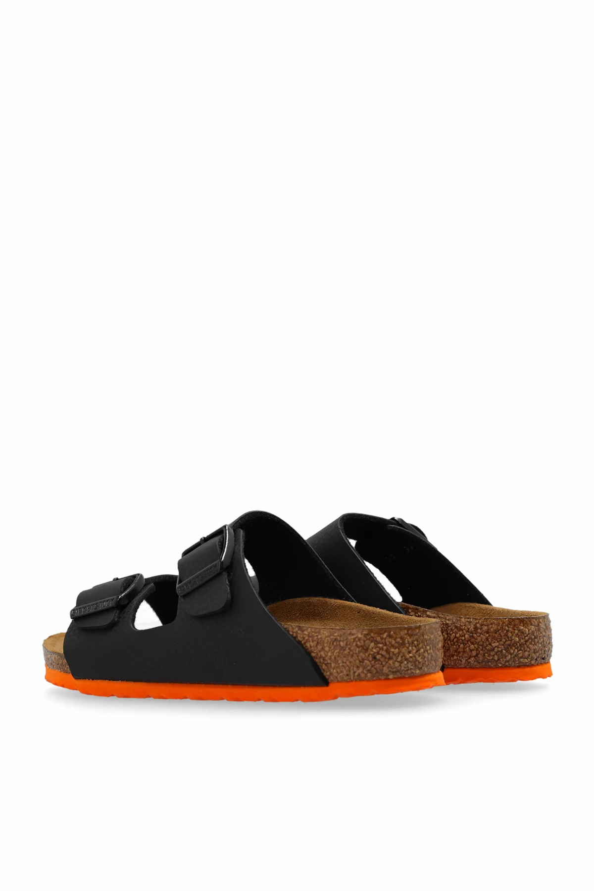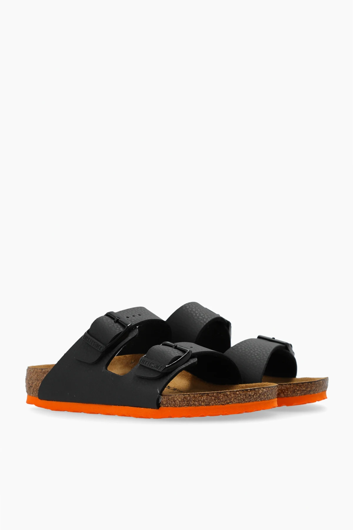 Introducing the Birkenstock Kids Arizona sandals, a testament to timeless design and enduring comfort. Crafted with the utmost care, these sandals feature adjustable dual straps made from premium Birko-Flor®, ensuring a bespoke fit for every foot. The straps, in a sophisticated black hue, are complemented by matching buckles, seamlessly blending functionality with style. The heart of the Arizona sandals lies in their anatomically shaped footbed, meticulously constructed from natural cork and lined with a soft suede-like leather that caresses the foot in comfort. The contrast of the orange layer at the sides of the sole adds a vibrant touch to the design, making these sandals not only comfortable but also a statement piece. The sole\'s profile, with a height of 1.5cm at the front and 3cm at the back, is engineered for optimal support, finished with an EVA foam layer for cushioning and durability. Despite the mislabeling as \"Long Sleeve,\" it is evident that the Arizona sandals are designed for the discerning individual seeking both comfort and style in their summer wardrobe. Why Purchase the Arizona Sandals? Adjustable straps and bespoke fit for unparalleled comfort. Eco-friendly cork and EVA foam construction for durability. Stylish design with a touch of color, suitable for various outfits. Soft leather lining for a luxurious feel.