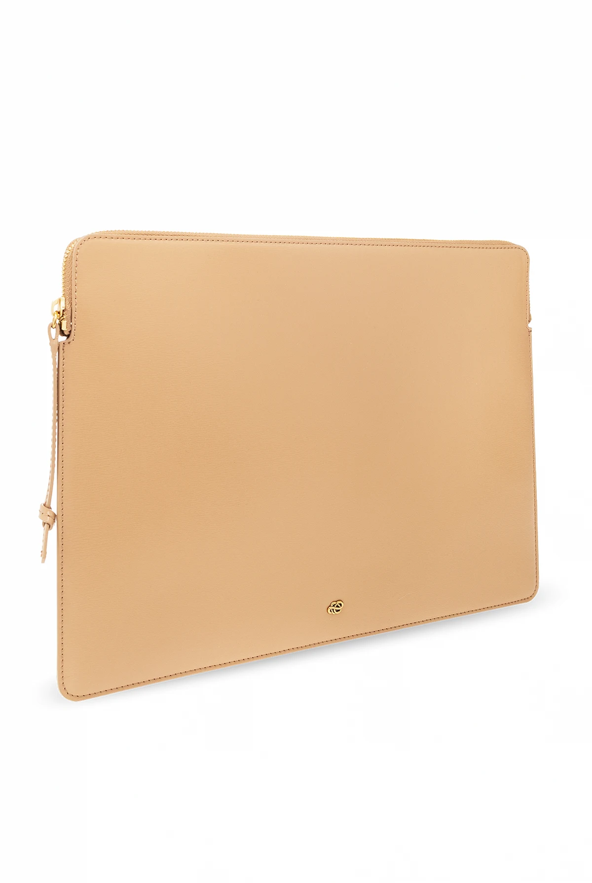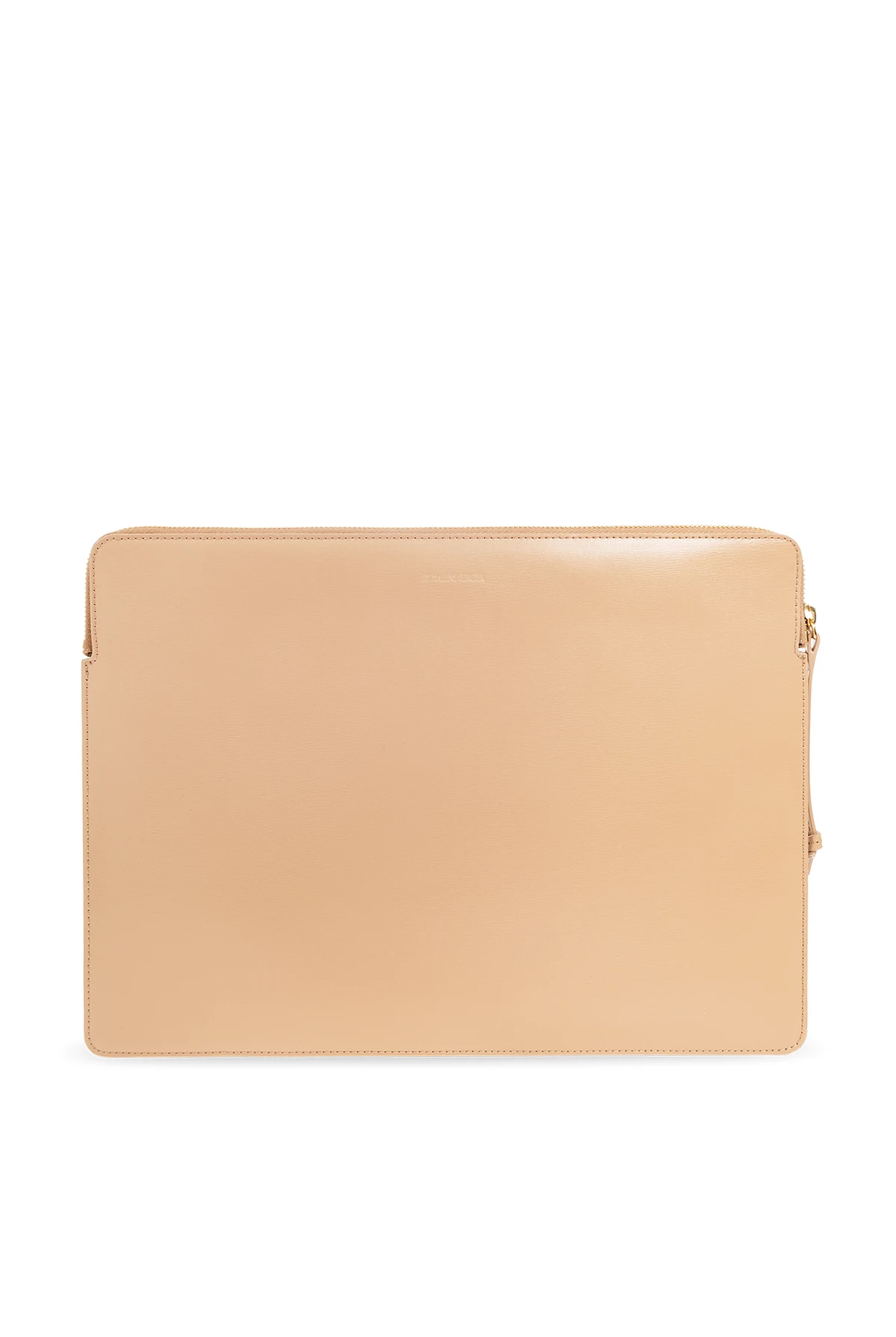 Beige ‘Aya’ laptop bag from By Malene Birger. Made of recycled leather, this model features a zip, ‘Scribble’ appliqué on the front, one internal compartment with one slip pocket as well as gold-tone metal hardware.