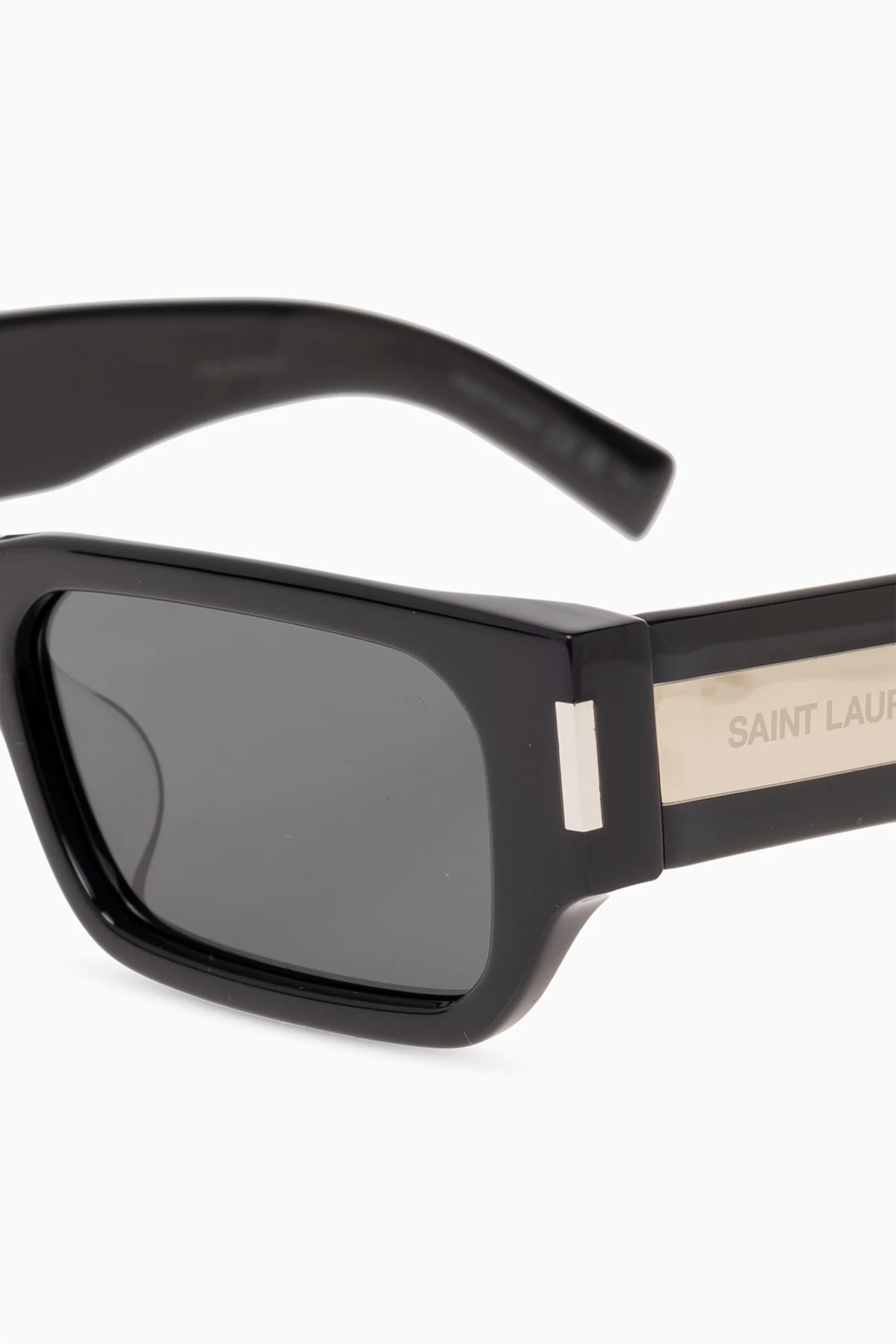 Introducing the ‘SL 660/F’ Sunglasses by Saint Laurent, a paragon of classic elegance and modern design. Crafted with precision, these sunglasses feature a sleek, rectangular frame with gently rounded lenses, complemented by broad temples that infuse a contemporary touch. The dominant black hue, paired with subtle gold accents, embodies sophistication, making these sunglasses a quintessential accessory for the fashion-forward individual. Constructed from premium acetate, metal, and nylon, these sunglasses promise durability and comfort for daily wear. The matte finish not only enhances the visual appeal but also ensures a pleasant tactile experience. A distinctive feature is the designer’s logo, prominently displayed on the temples against a gold backdrop, signaling the authenticity and luxury status of the product. Furthermore, the gray-tinted lenses offer 100% protection against UVA/UVB rays, ensuring both style and safety are uncompromised. The ‘SL 660/F’ sunglasses are presented with an exclusive protective case, indicating that the product is sold as a complete set, ready to accompany you on your sun-filled adventures. Whether showcased on a model or from various angles, these sunglasses exude an air of exclusivity, making them a pivotal styling element for those who value high-end clothing and accessories from renowned designers. Why Purchase This Product? Elegant design with a modern twist, perfect for enhancing any outfit. Made from high-quality materials for lasting wear and comfort. Features designer’s logo on gold accents, underscoring luxury and authenticity. Gray-tinted lenses provide optimal sun protection and stylish finish. Comes with a protective case, ensuring the sunglasses remain pristine.