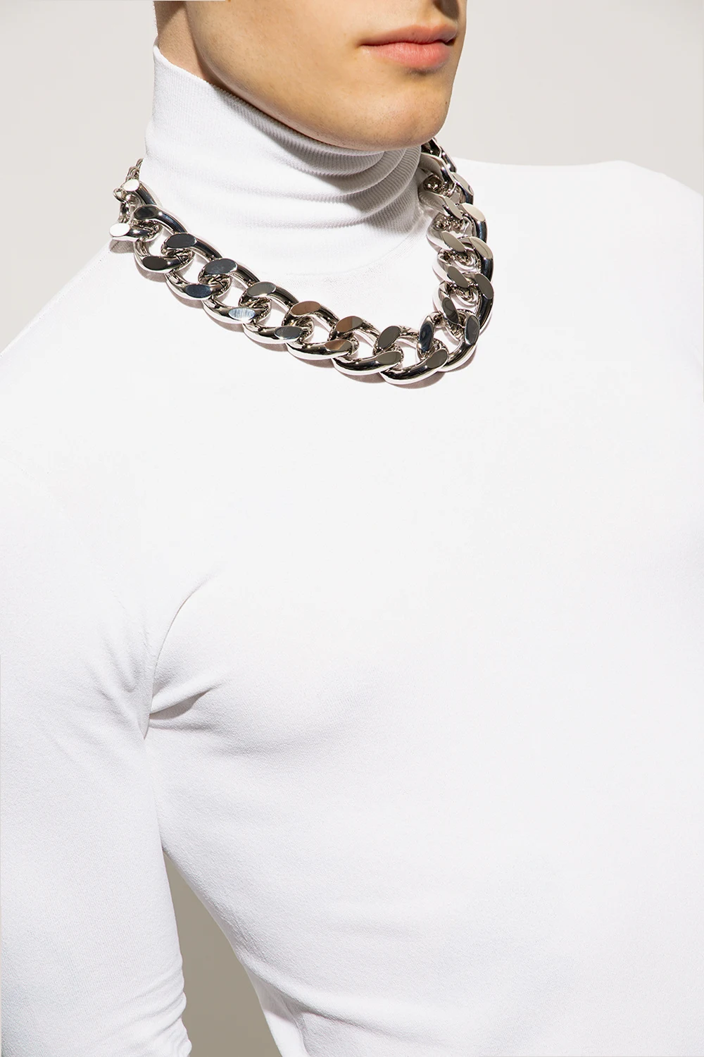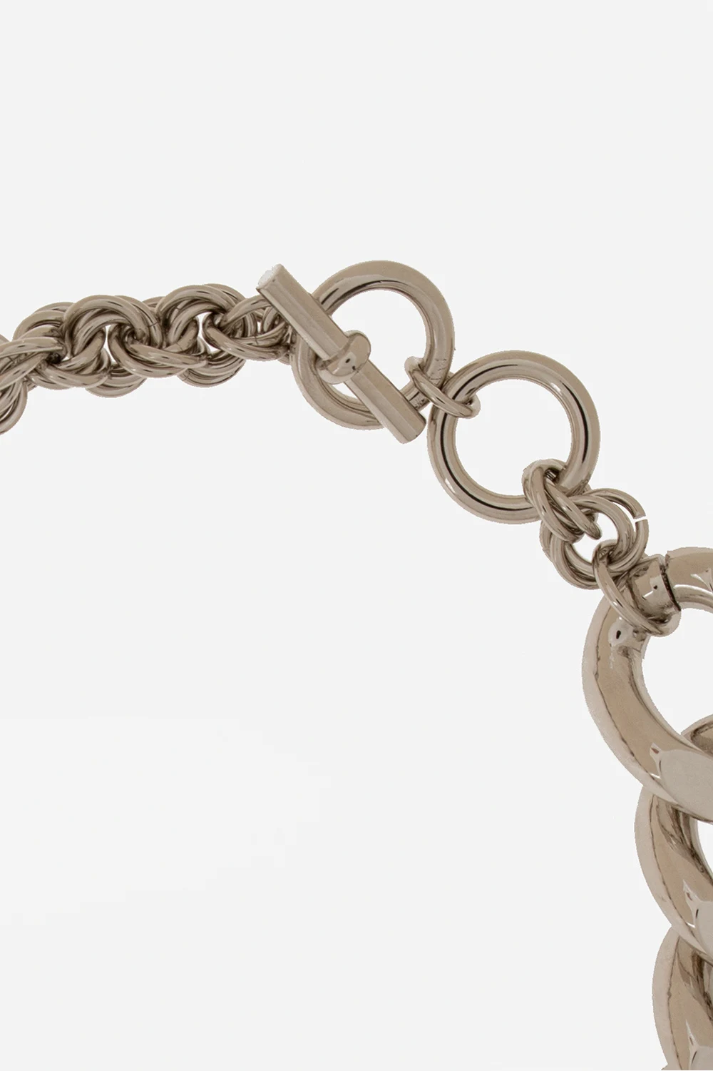 Short necklace in silver-tone from JW Anderson. Flaunting a chain link design, this item showcases an engraved logo.