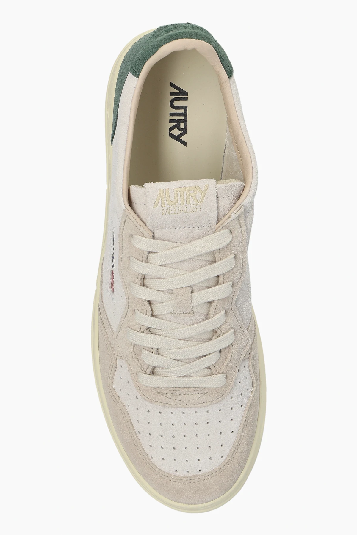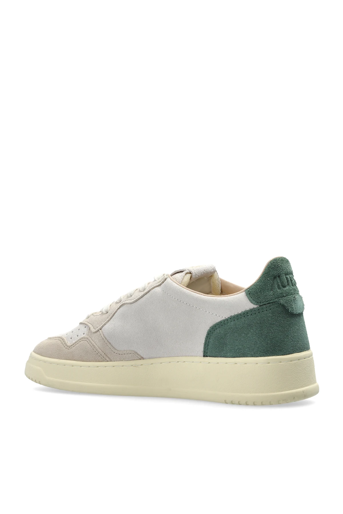 Discover enduring sophistication with the “Medalist Low” sneakers by Autry—a masterful blend of retro heritage and contemporary innovation. This low-top silhouette features a streamlined, elongated profile with a rounded toe and paneled construction, accented by meticulously stitched overlays and understated perforations for enhanced breathability. Crafted from premium natural leather with supple suede accents gracing the toe, these sneakers offer a tactile interplay of textures. The interior lining and insole are thoughtfully selected for uncompromising comfort, while the robust rubber outsole ensures everyday resilience. A striking green heel panel adds a distinctive touch, perfectly offsetting the embroidered AUTRY logo and iconic U.S. flag detail at the quarter, alongside an elegant gold signature on the tongue. Why choose this product? Exquisite materials: natural leather and supple suede for a luxurious feel Perfect breathability thanks to artisanal perforations Ergonomic insole and lining offer all-day comfort Striking contrast detailing for a distinctive look Timeless design, inspired by the iconic American legacy of Autry