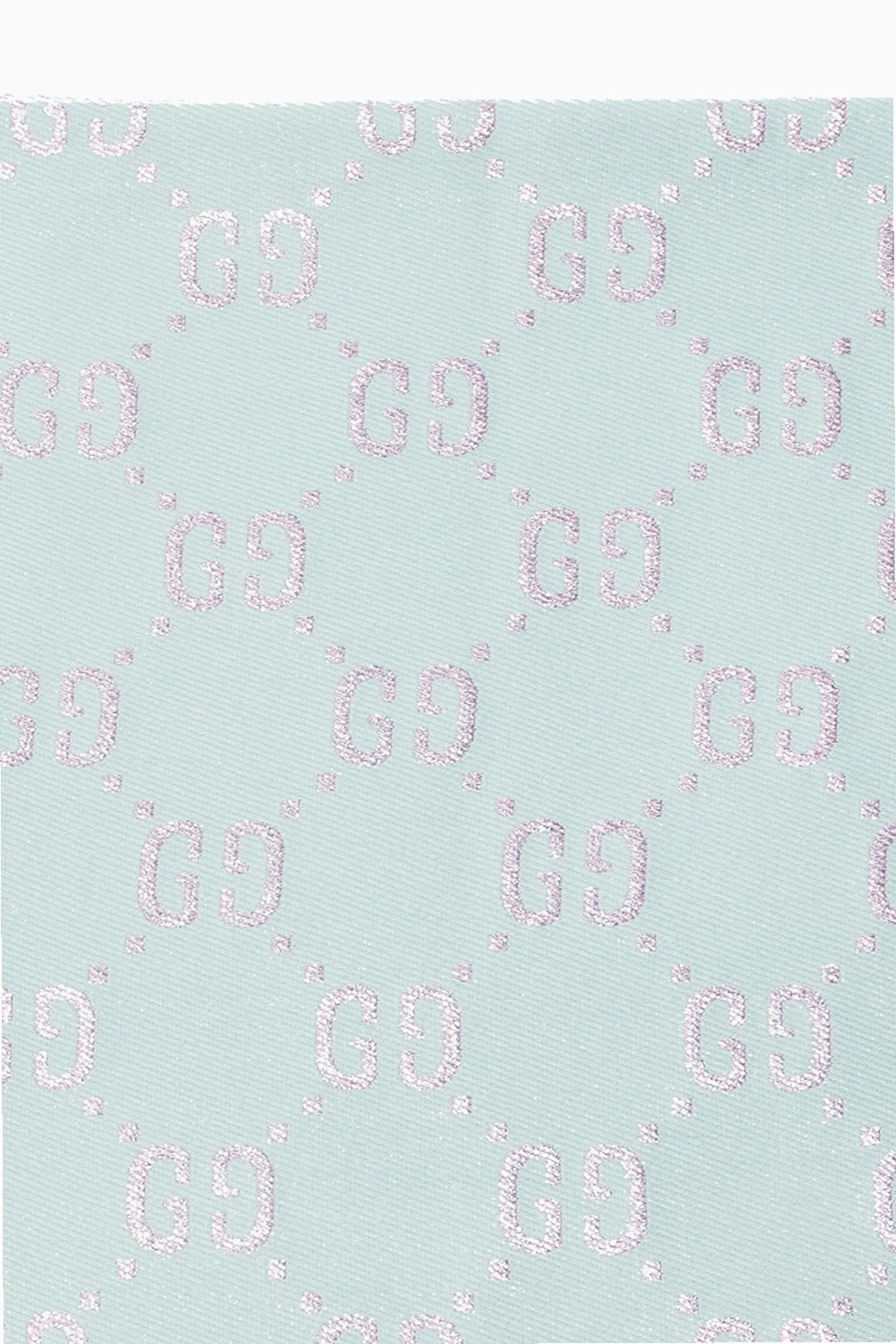 Blue and purple shawl from Gucci Kids. Crafted with the use of wool and synthetic yarns, this accessory showcases logo pattern, embroidered with lurex yarn, and short fringes.