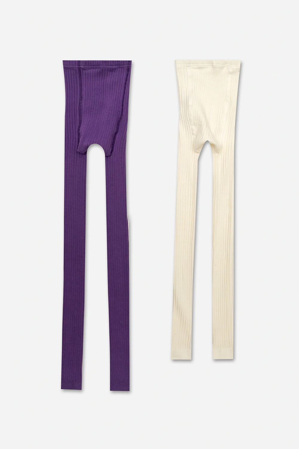 2-pack of ribbed tights in purple and white from Mini Rodini. Made of cotton, this pair features an elastic waistband and logo patch in white and black.