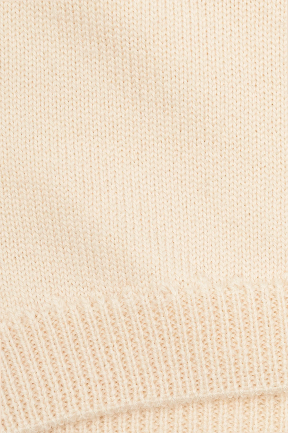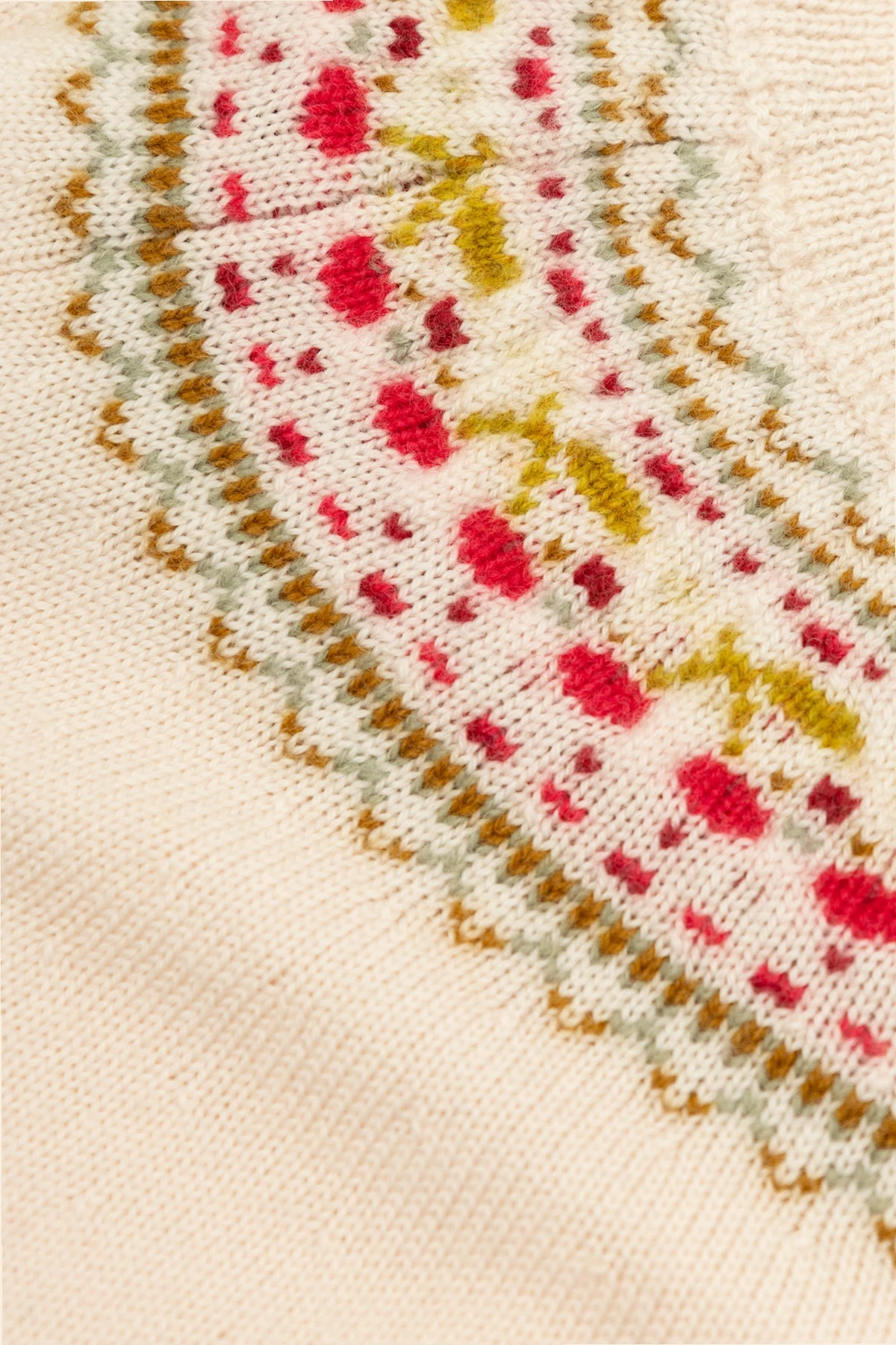 Introducing the Genievre Wool Sweater from the exclusive Bonpoint collection for girls. This sophisticated garment exudes timeless elegance and refined craftsmanship, perfect for discerning young fashionistas. Crafted from the finest blend of wool and a touch of cashmere, the Genievre sweater offers unrivaled softness and warmth. Its classic, straight cut with long sleeves and a rounded neckline ensures a comfortable fit, while the ribbed cuffs and hem add a touch of refined detail. The sweater features a delicate, intricate pattern concentrated around the upper chest, showcasing a harmonious blend of pink, green, and brown hues in floral and geometric designs. The dominant soft pink color enhances its youthful charm, making it an exquisite choice for any occasion. Why Choose This Product? Luxurious Materials: Premium wool and cashmere blend for ultimate comfort and warmth. Elegant Design: Classic silhouette with intricate, colorful patterns for a sophisticated look. Exclusive Brand: Part of the esteemed Bonpoint collection, renowned for its high-quality, French-inspired children\'s fashion. Attention to Detail: Ribbed cuffs and hem for added durability and style.