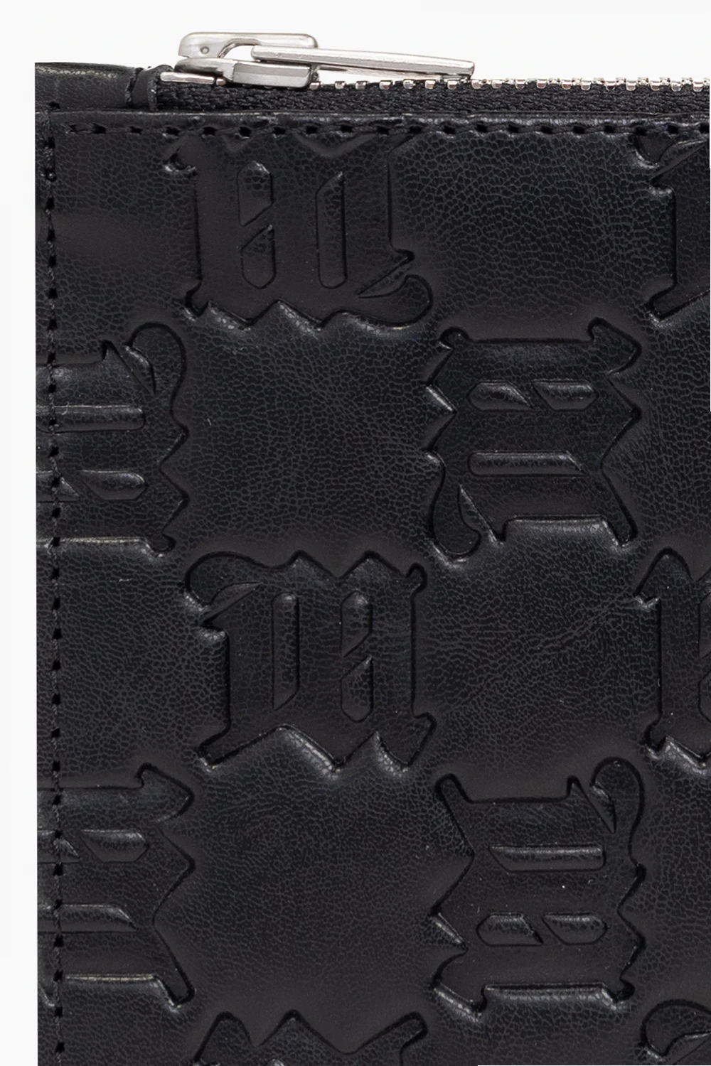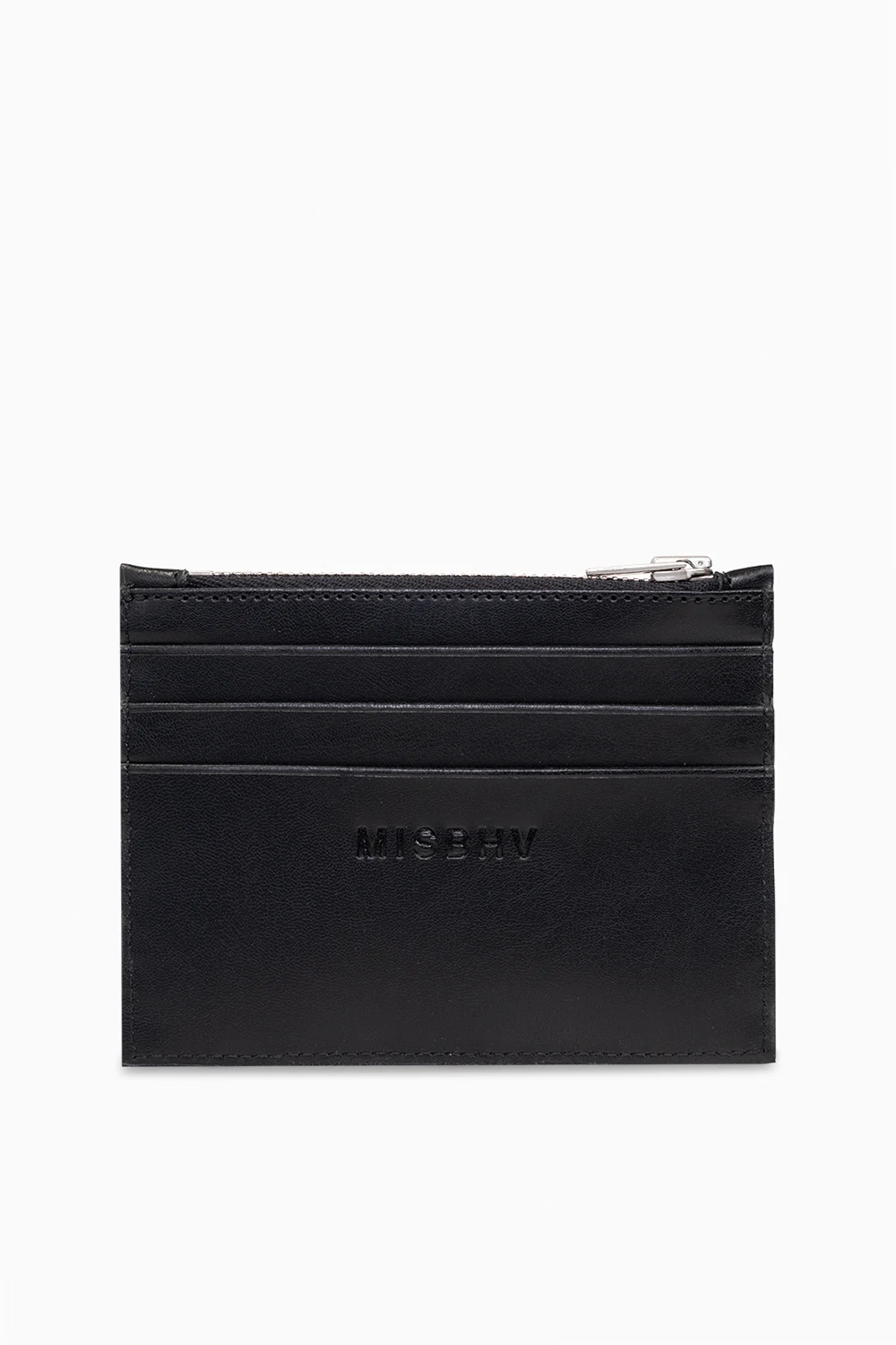 Black card holder from MISBHV. Made of leather, this item features a quilted monogram pattern on the front, zipped coin pocket, three card slots at the back and embossed logo detail.