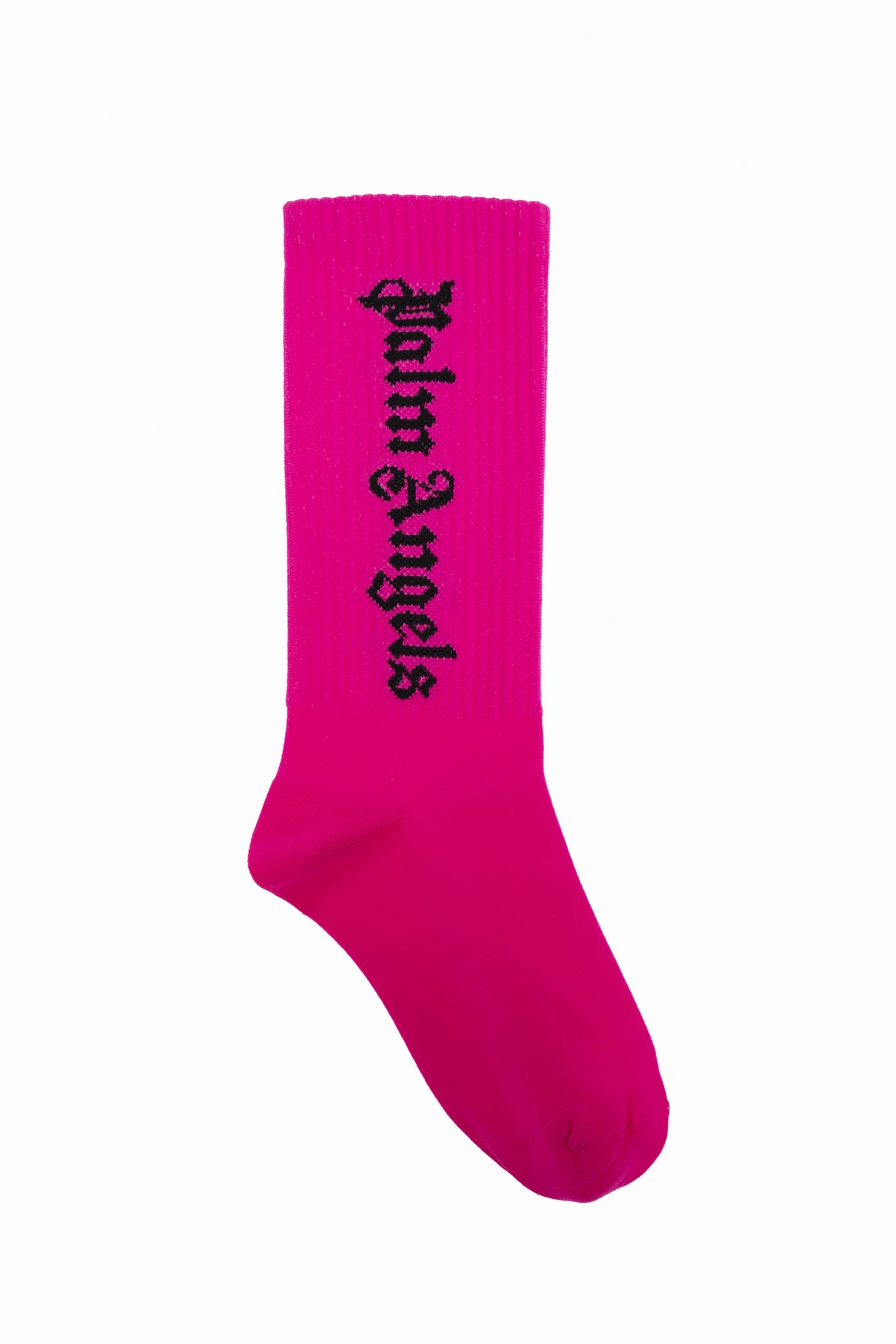 Introducing the Pink Logo Socks by Palm Angels Kids, a sublime fusion of Italian charisma and Los Angeles multicultural flair, meticulously crafted for the discerning young trendsetter. These socks, in a striking pink hue, feature the iconic black \"Palm Angels\" logo emblazoned vertically along the side, enhancing their exclusivity. Constructed from premium-quality poliamide, these socks offer exceptional elasticity, ensuring a snug fit that contours gracefully to the foot. The classic, slightly extended design extends just above the ankle, providing both style and comfort. The simplicity of the pattern accentuates the brand\'s emblem, making these socks an epitome of understated elegance. Why Choose This Product? Distinctive Design: Vibrant pink color with a bold logo statement. Superior Comfort: Elastic material for a perfect fit. Timeless Style: Classic length that complements any outfit. Exclusive Branding: Prominent logo reflects luxury and sophistication.