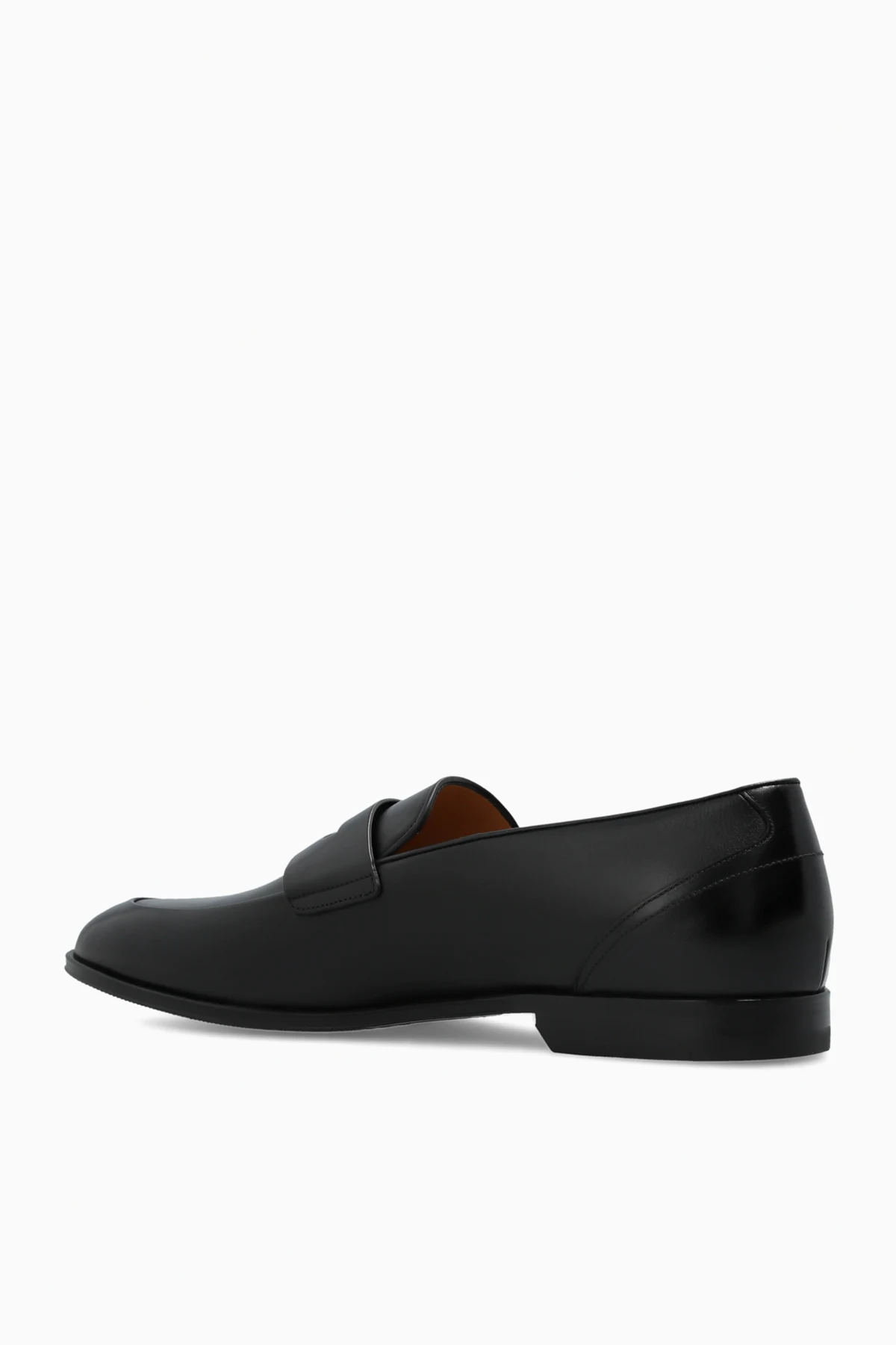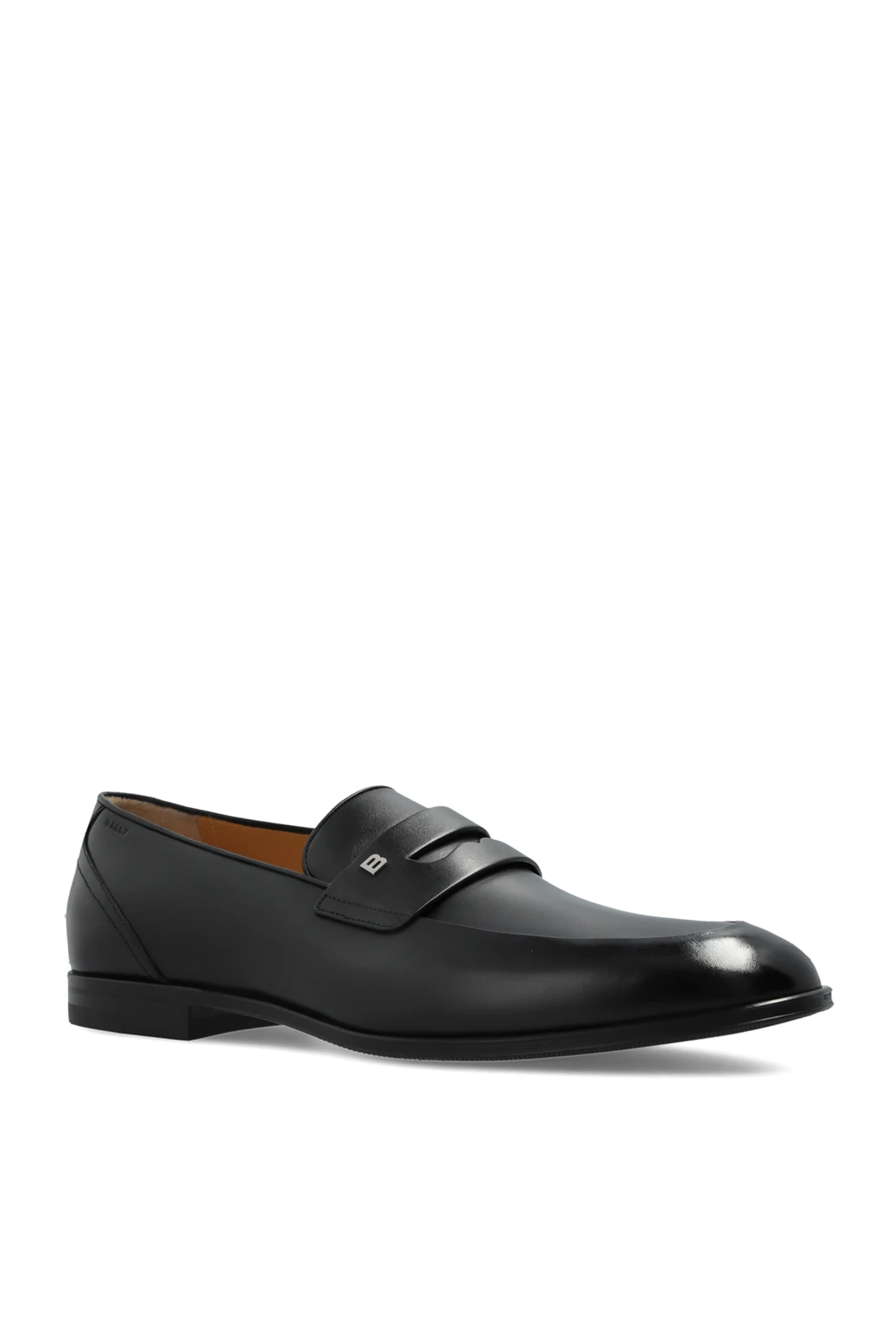 These black leather loafers by Bally embody discreet sophistication and timeless style. Meticulously crafted from smooth, lustrous calfskin, they capture and reflect the light with a refined sheen, while the streamlined silhouette and subtle, rounded toe evoke classic elegance. The understated, unembellished upper and gently elevated heel present an effortless, minimalist aesthetic, making these loafers exceptionally versatile for both formal and contemporary occasions. A signature metal detail on the penny strap, embossed with Bally\'s iconic B initial, provides a distinguished accent, epitomizing the brand’s dedication to refined craftsmanship. The supple leather lining ensures comfort with every stride, while a durable leather and rubber sole guarantees impeccable stability and wear. Bally’s storied Swiss heritage resonates in each meticulously executed detail, offering footwear that is as enduring as it is distinguished. Why choose this product? Crafted from premium, luminous natural leather Timeless design emphasizing versatility and elegance Subtle metallic Bally “B” detail for unique sophistication Luxurious leather interior for superior comfort Durable leather and rubber outsole for lasting performance Heritage of Swiss mastery since 1851
