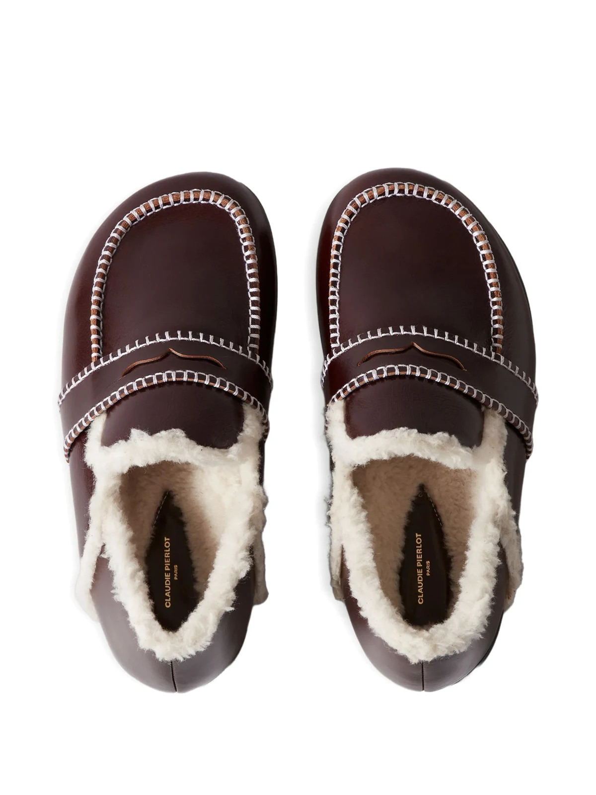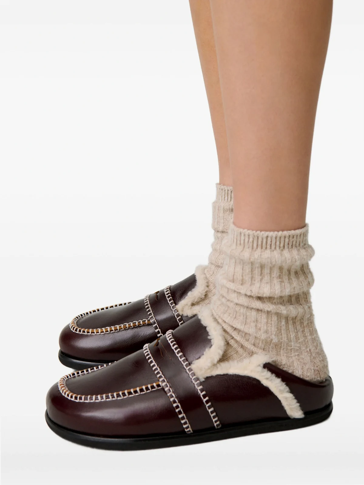 contrast-stitching mules