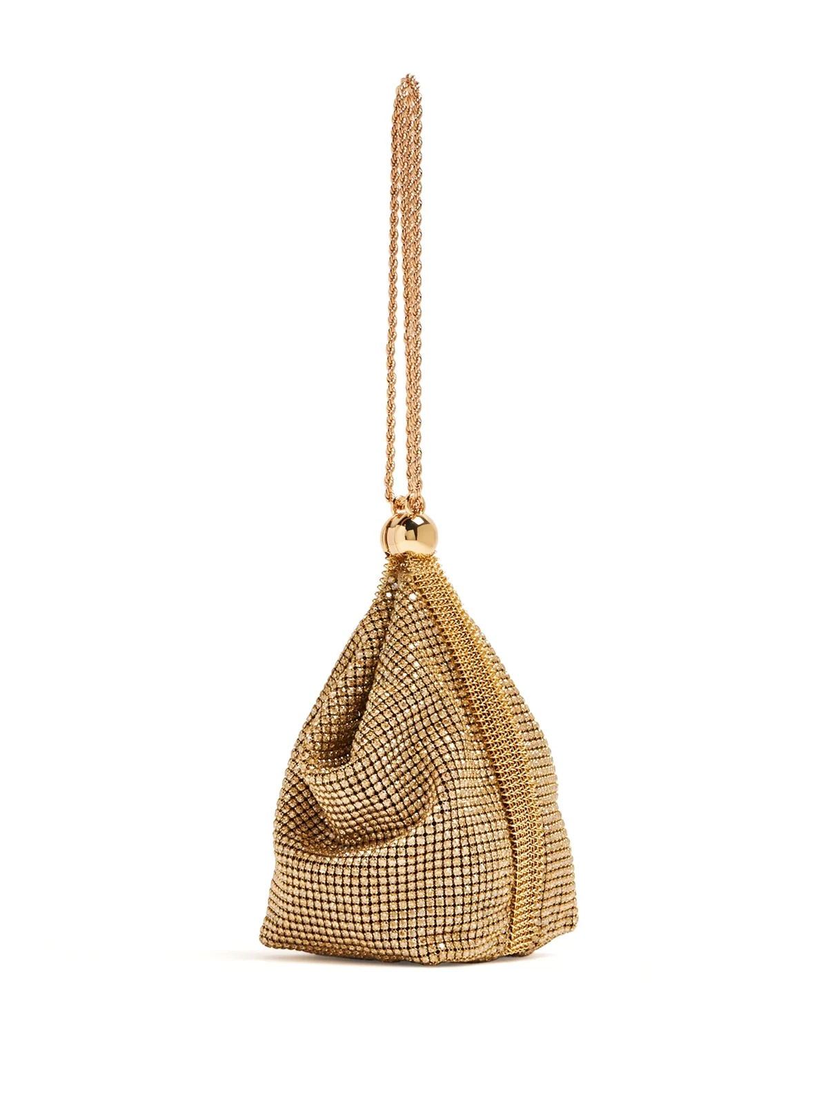 Pearl Crush Vanity Case with Chain Quilted Denim Mini clutch bag