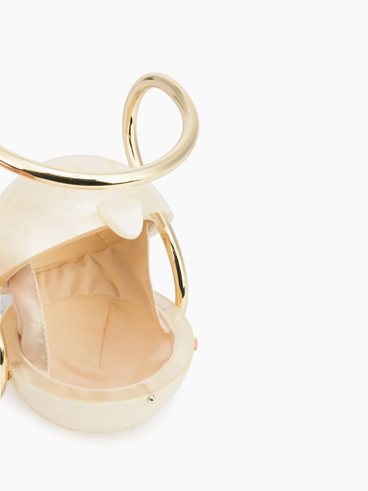 ivory white gold-tone hardware clasp fastening single rounded top handle main compartment full lining