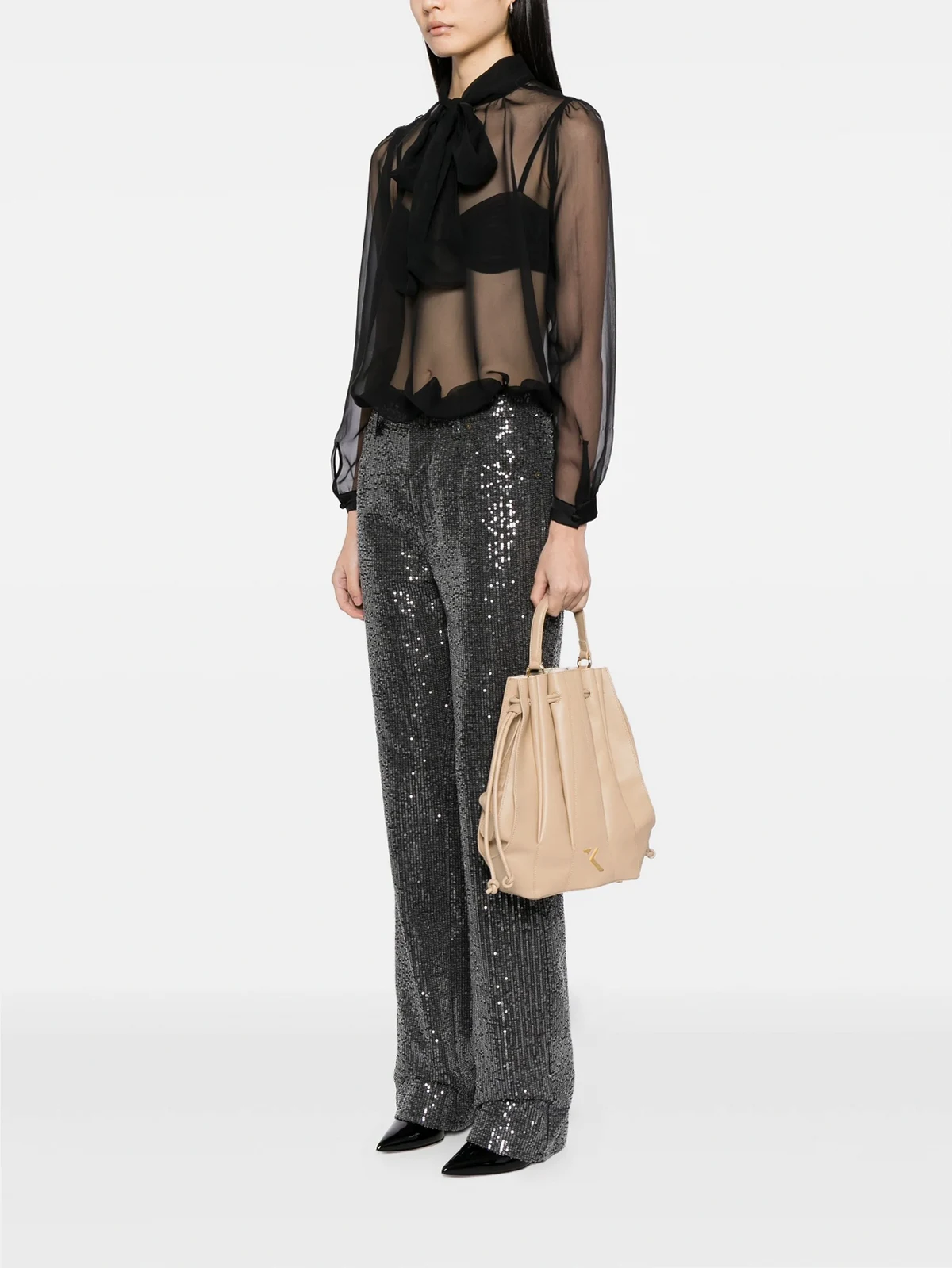 cream "Amelia Mini" hand-held bag, bucket bag type