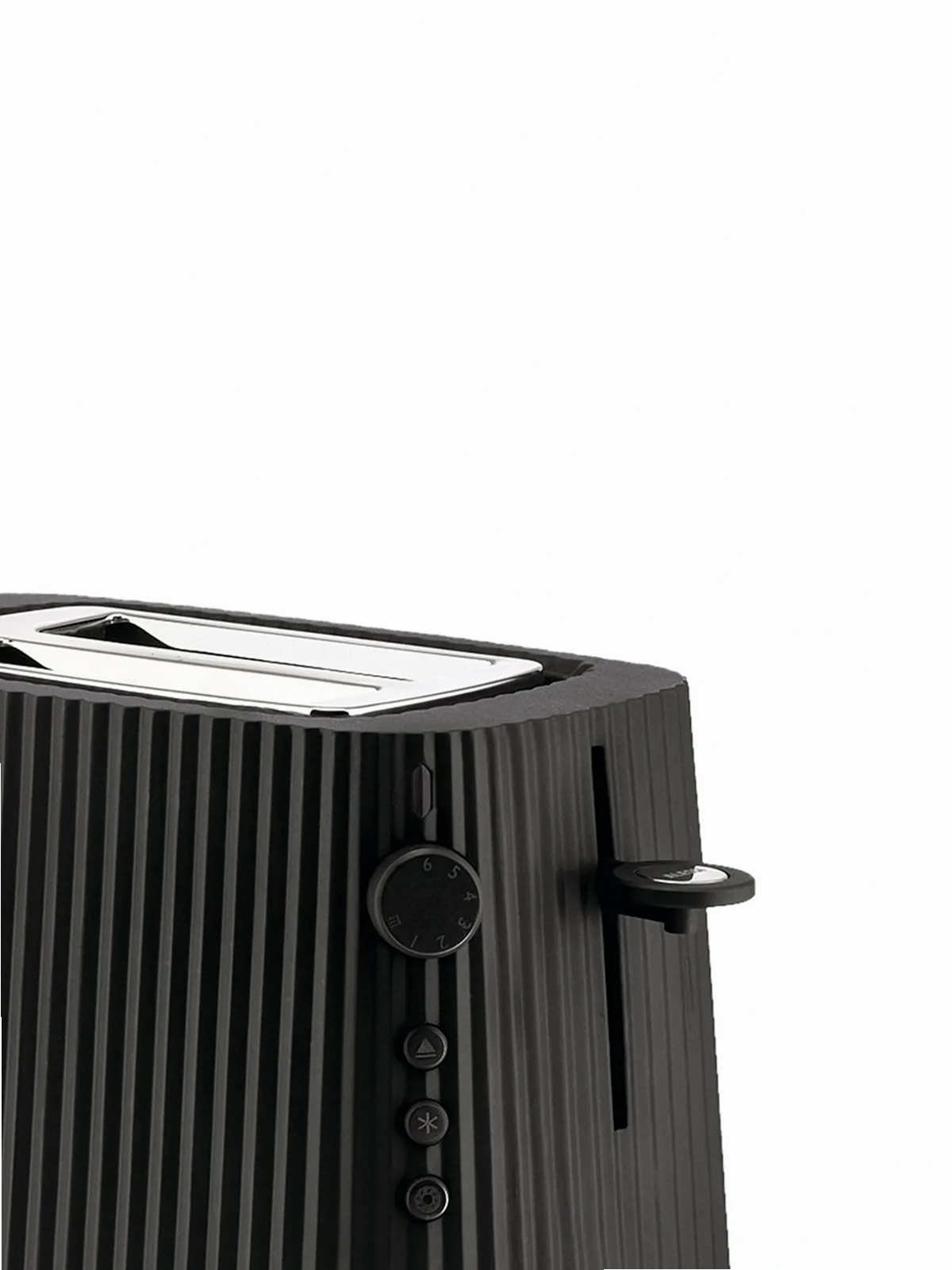 black resin/stainless steel pleat detailing Length: 30cm Width: 18.5cm Height: 25cm Functions: six toaster settings with reheat and defrost options EU plug