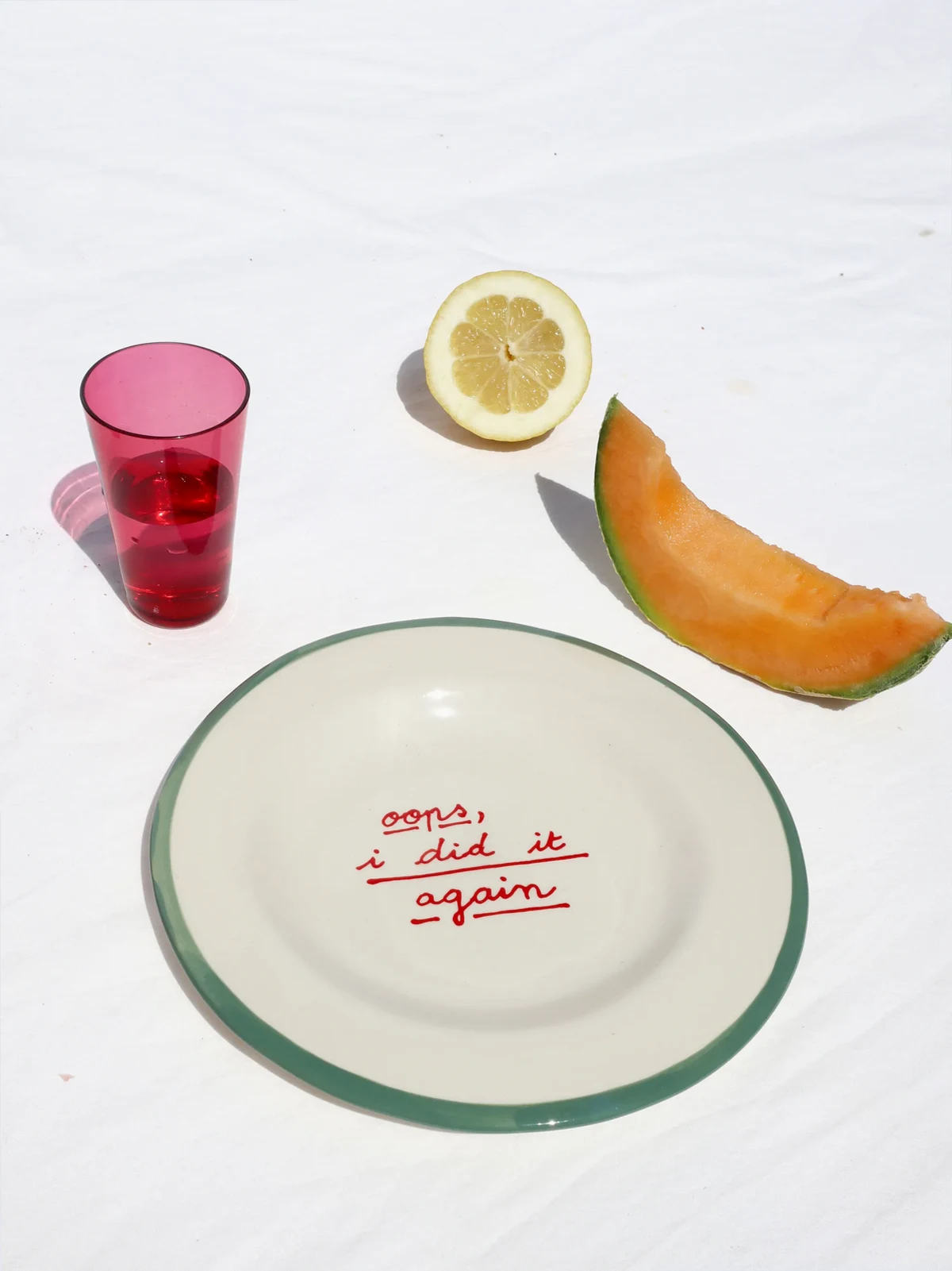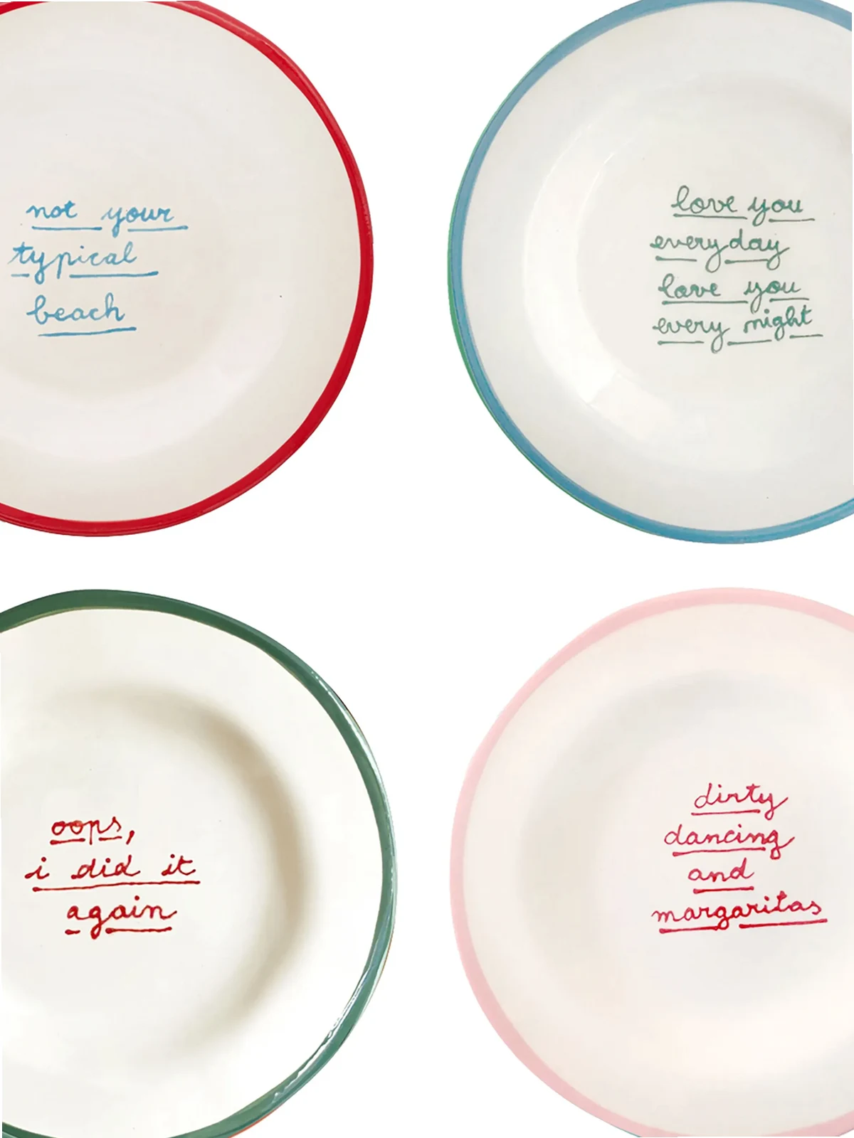 I Put A Spell On You dessert plate (set of 4) from LAETITIA ROUGET featuring white/multicolour, slogan print, set of four, dishwasher safe, stoneware and 20cm x 20cm x 2cm.