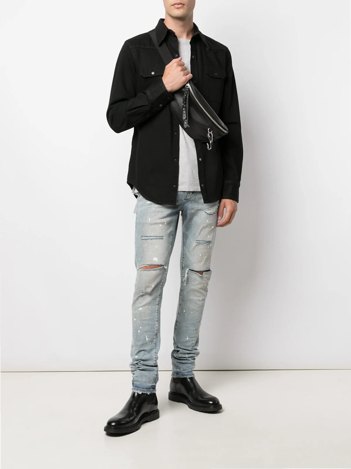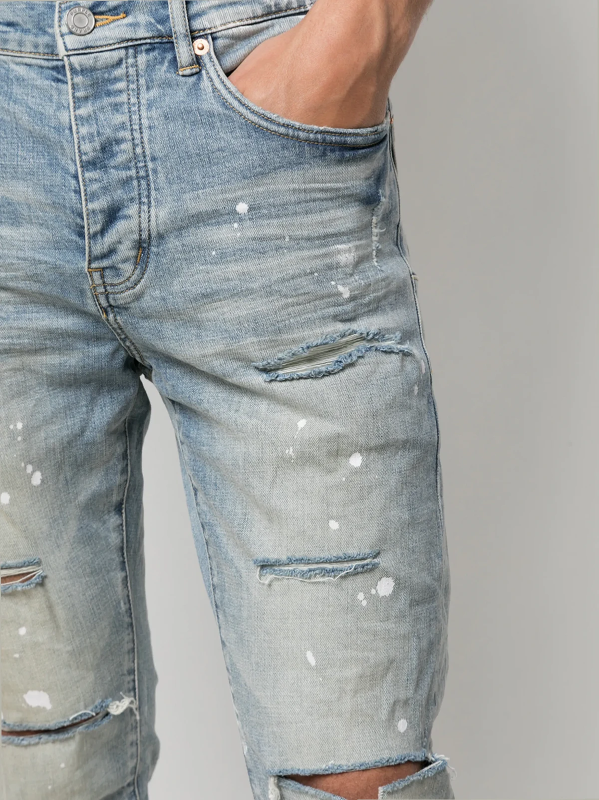 P001 paint splatter slim-fit jeans