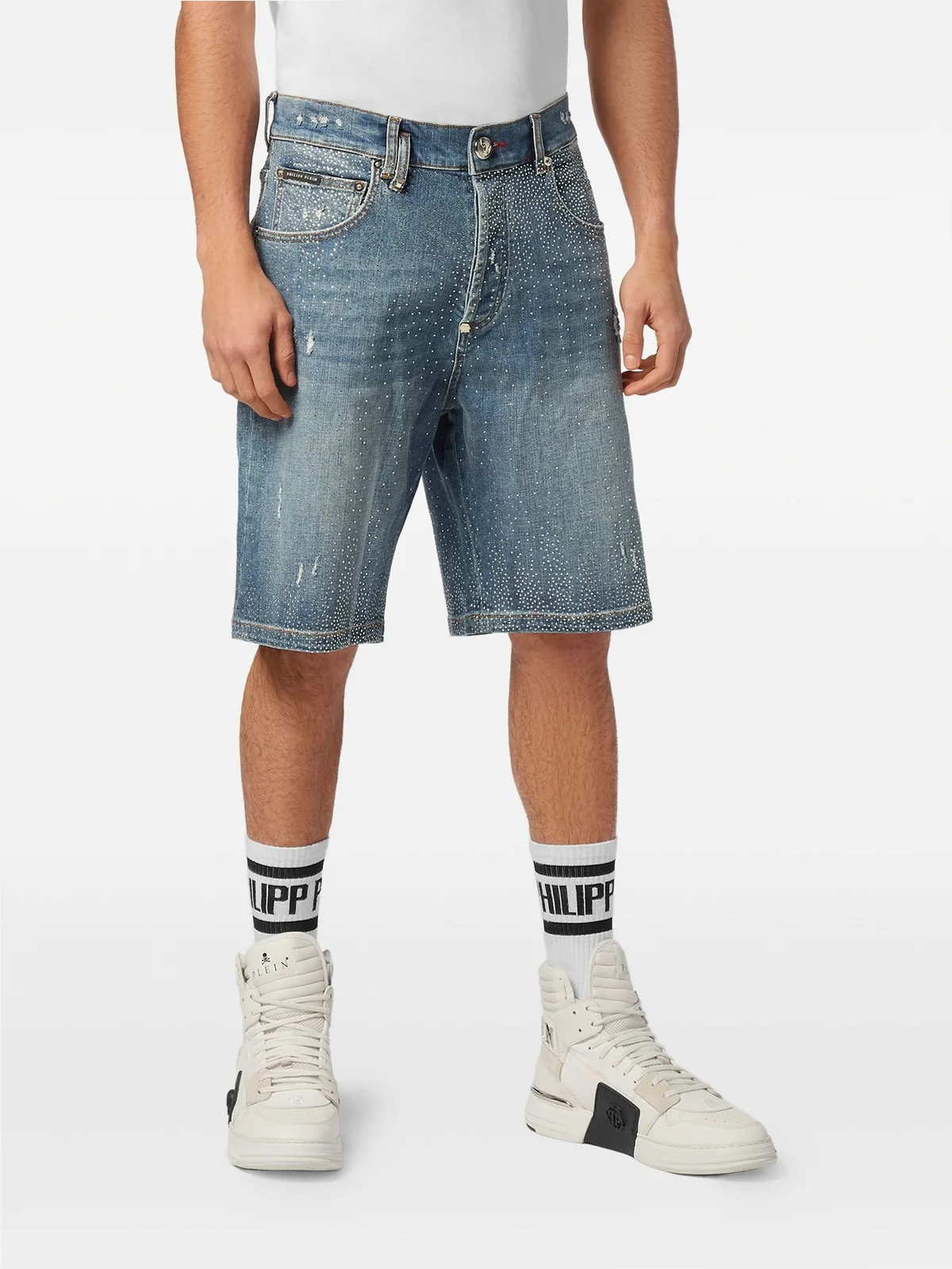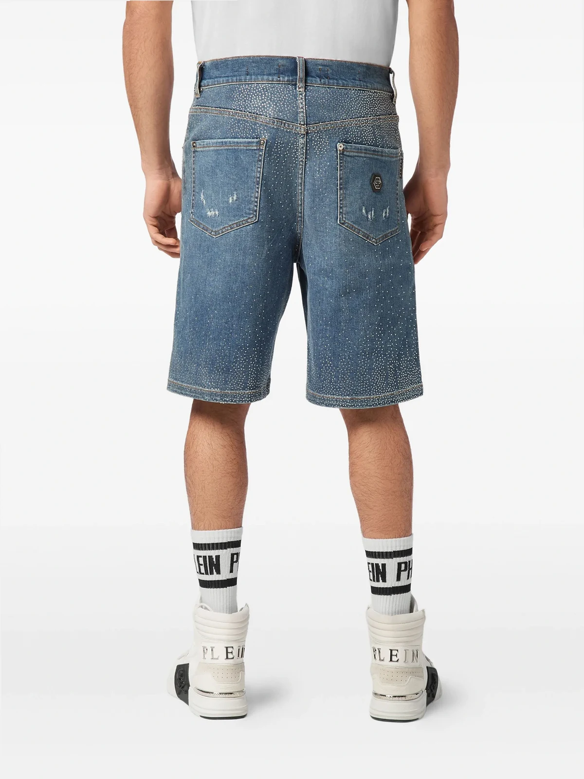crystal-embellished denim shorts
